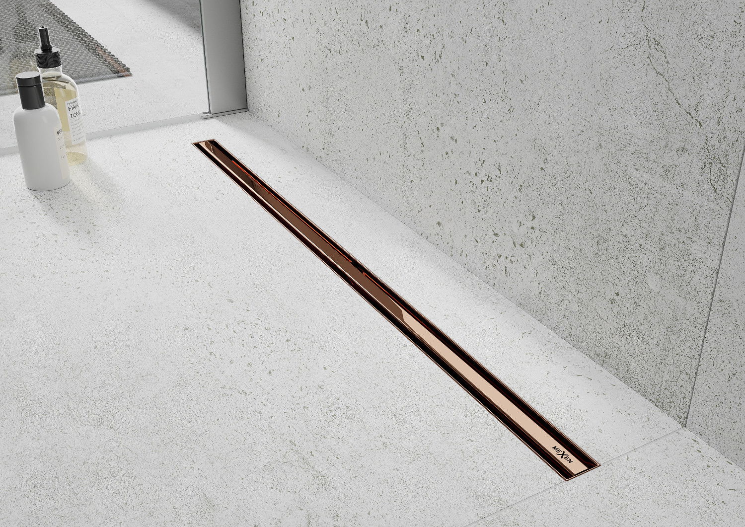 Mexen Flat 360° Slim odtokový žľab otočný 120 cm, ružové zlato - 1641120