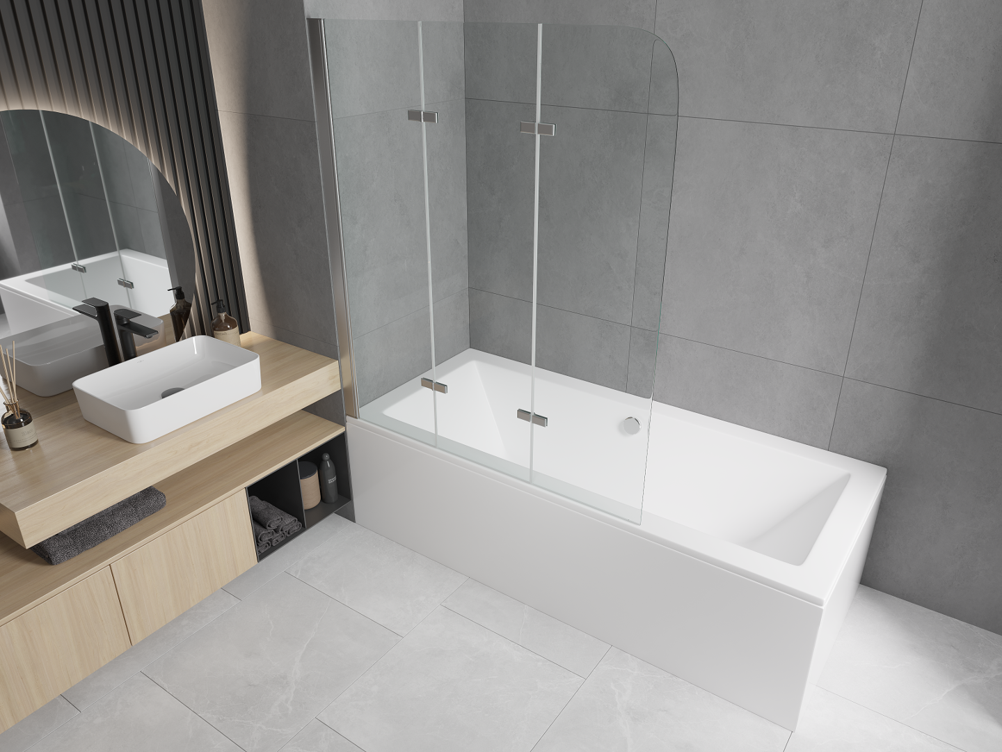Obrazovka je vyrobená z troch krídel s možnosťou skladania. Toto riešenie šetrí viac priestoru v kúpeľni a umožňuje vám voľne využívať zvyšný priestor, keď nepoužívame kúpaciu oblasť.