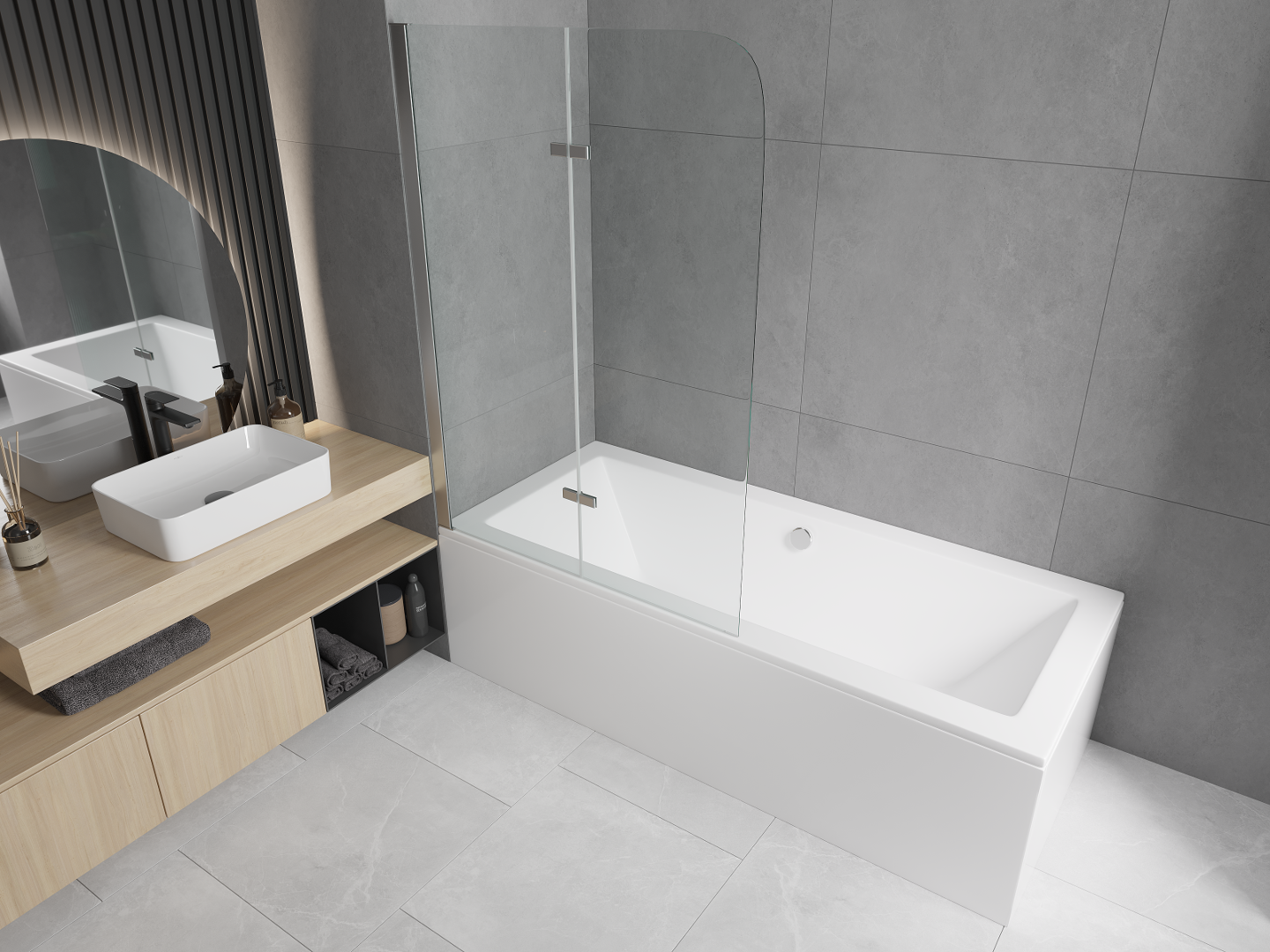Paraván vyrobený z dvoch krídel s možnosťou zloženia. Takéto riešenie umožňuje ušetriť viac miesta v kúpeľni a umožňuje voľné využitie zvyšného priestoru, keď nepoužívame kúpeľnú zónu.