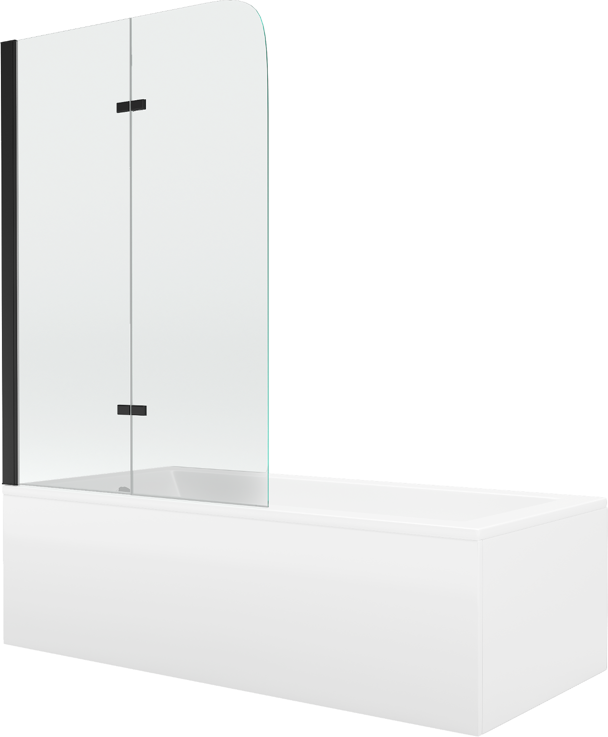 Mexen Cubik obdĺžniková vaňa 150 x 70 cm s opláštením a 2-krídlovou zástenou 80 cm, transparentná, čierna