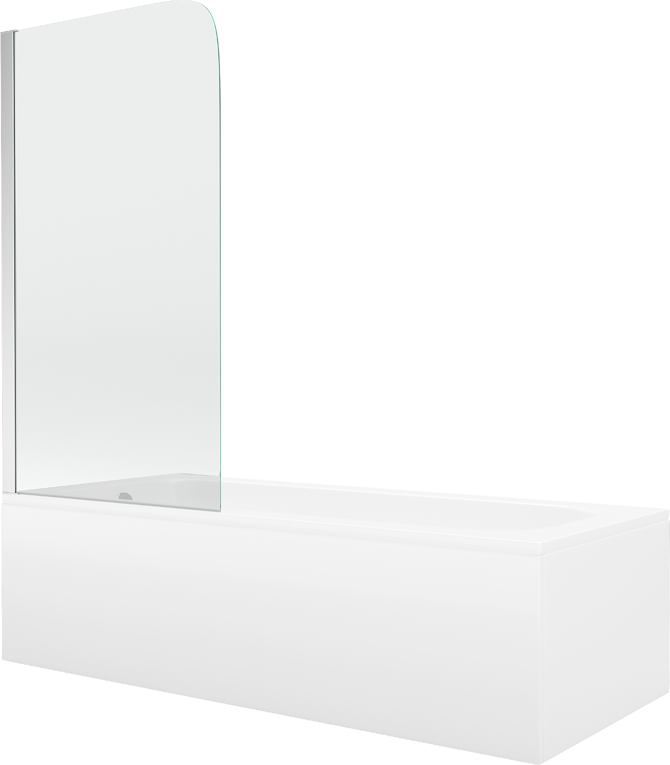 Mexen Vega obdĺžniková vaňa 150 x 70 cm s panelom a jedným 75 cm krídlovým paravánom, transparentná, chróm