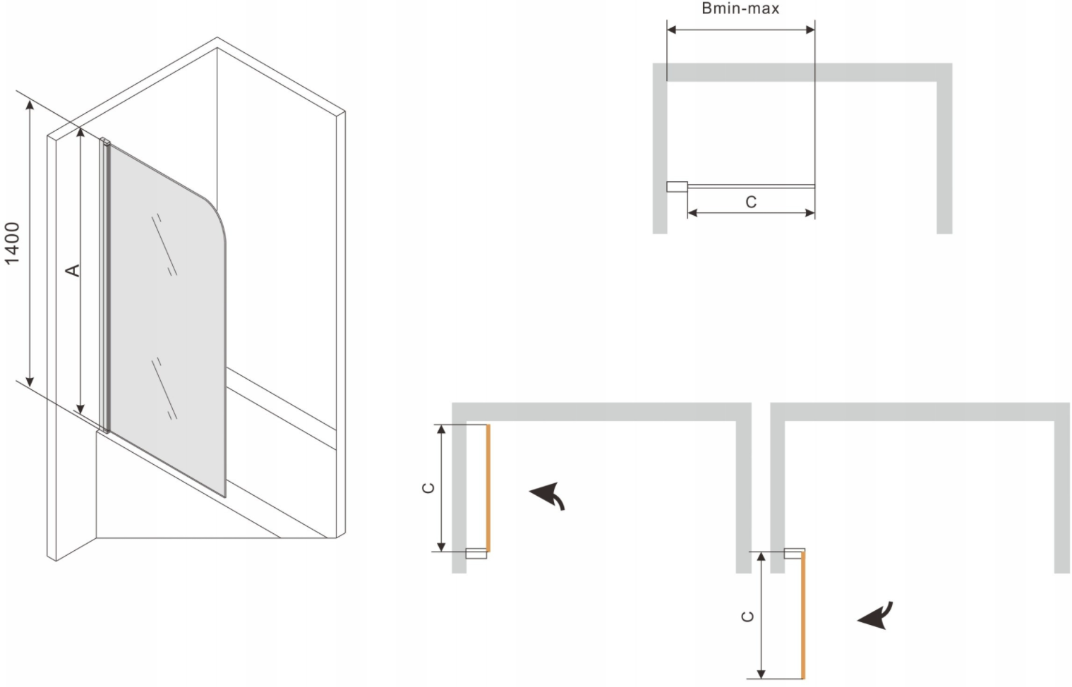 Použitím univerzálneho upevňovacieho systému je možné obrazovku namontovať napravo alebo vľavo, v závislosti od vašich potrieb. Týmto spôsobom môžete ľahko navrhnúť sprchu prispôsobenú priestoru v kúpeľni.