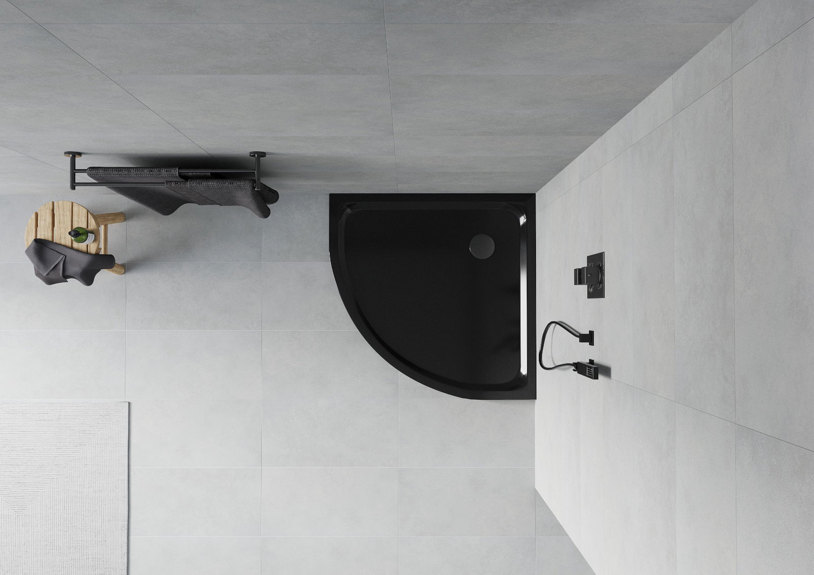 Mexen Flat sprchová vanička polokruhová slim 70 x 70 cm, čierna, sifón čierny - 41707070B