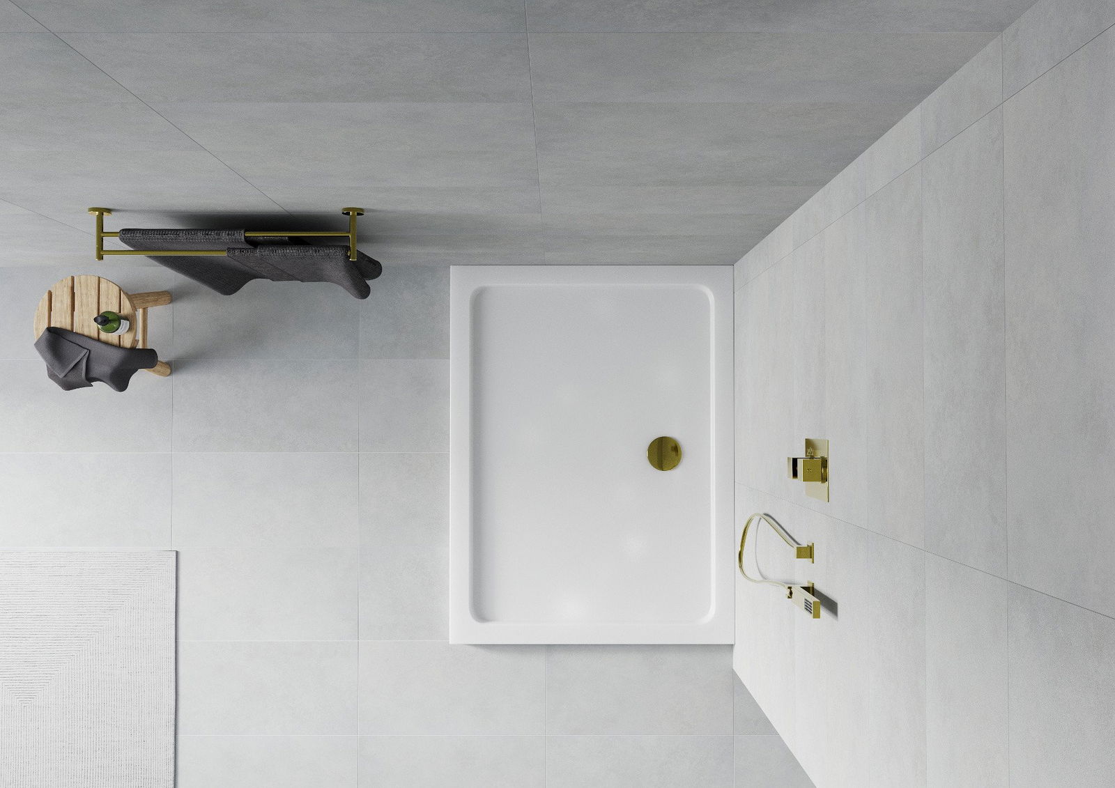 Mexen Flat obdĺžniková sprchová vanička slim 80 x 70 cm, biela, sifón zlatý - 40107080G