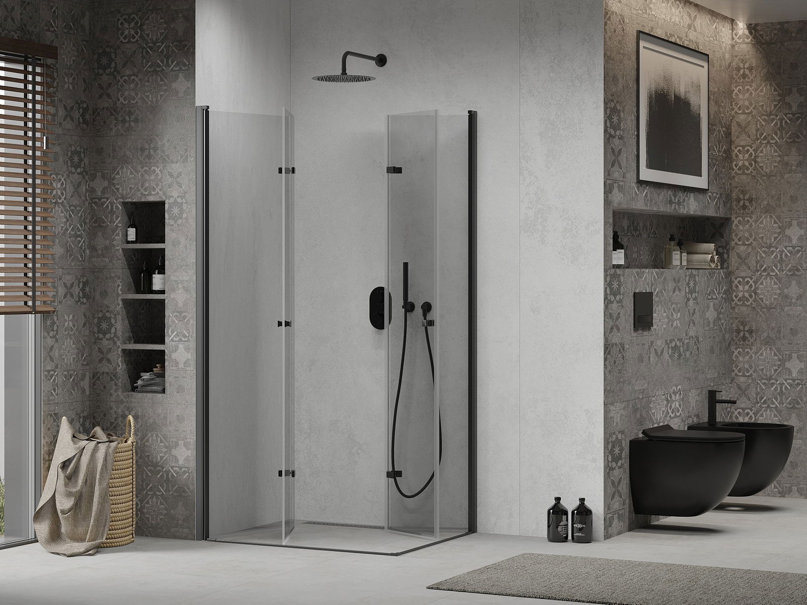 Mexen Lima Duo skladacia sprchová kabína 90 x 80 cm, transparentná, čierna - 856-090-080-70-00-02