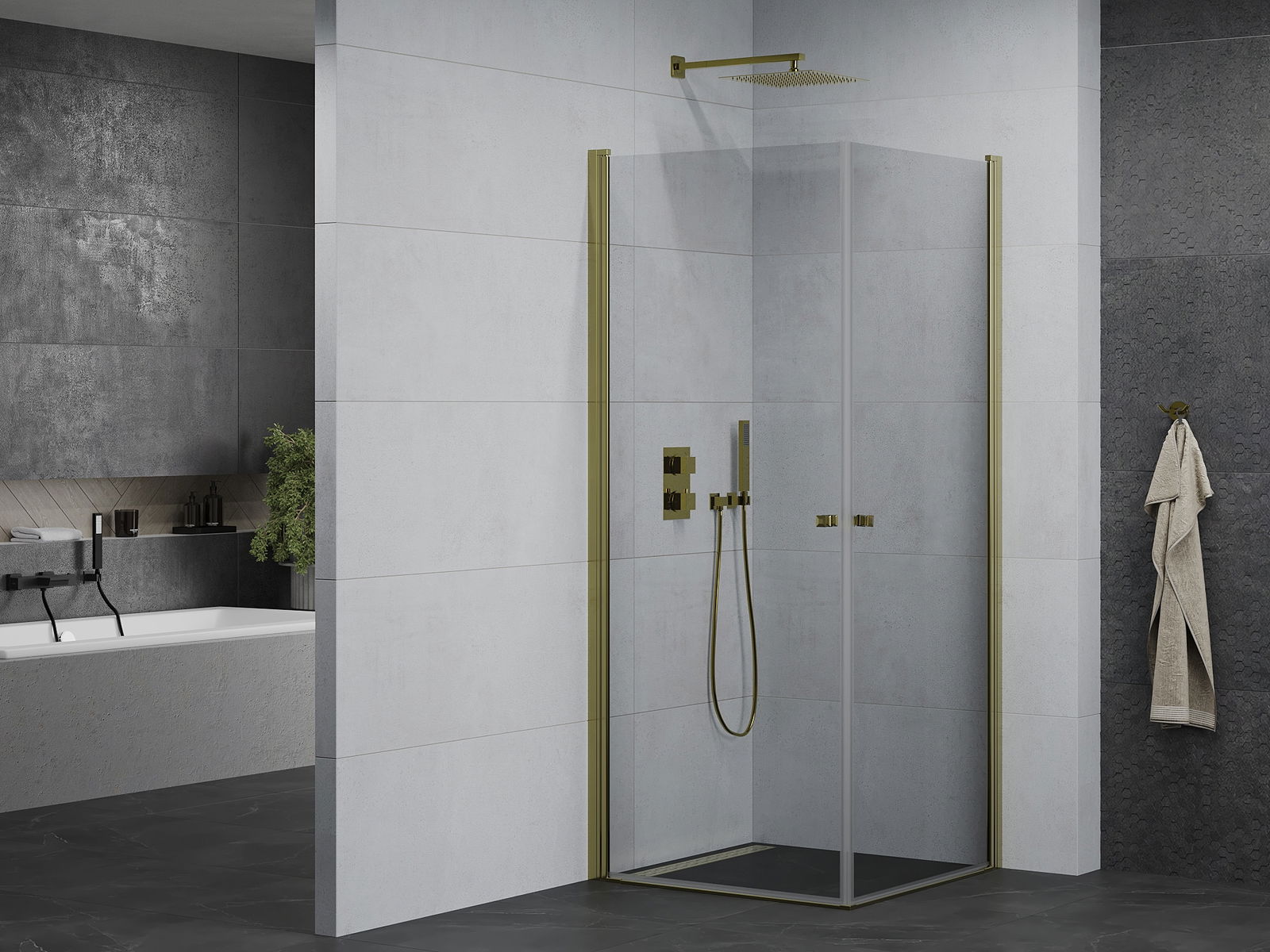 Mexen Pretoria Duo sprchovací kút výkyvný 70 x 70 cm, transparentný, zlatý - 852-070-070-50-00-02