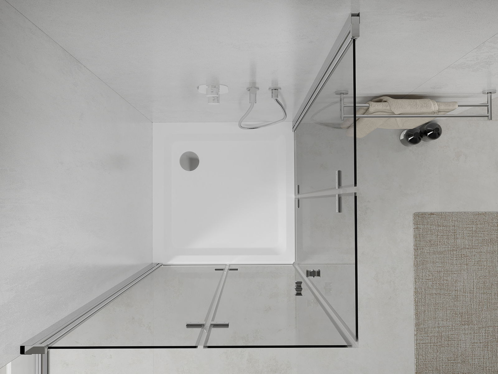 Schopnosť zložiť dvere vonku aj vo vnútri vám umožňuje získať viac priestoru, keď nepoužívate sprchu. Je to ideálne riešenie pre menšie kúpeľne, maximálne pomocou dostupného povrchu.