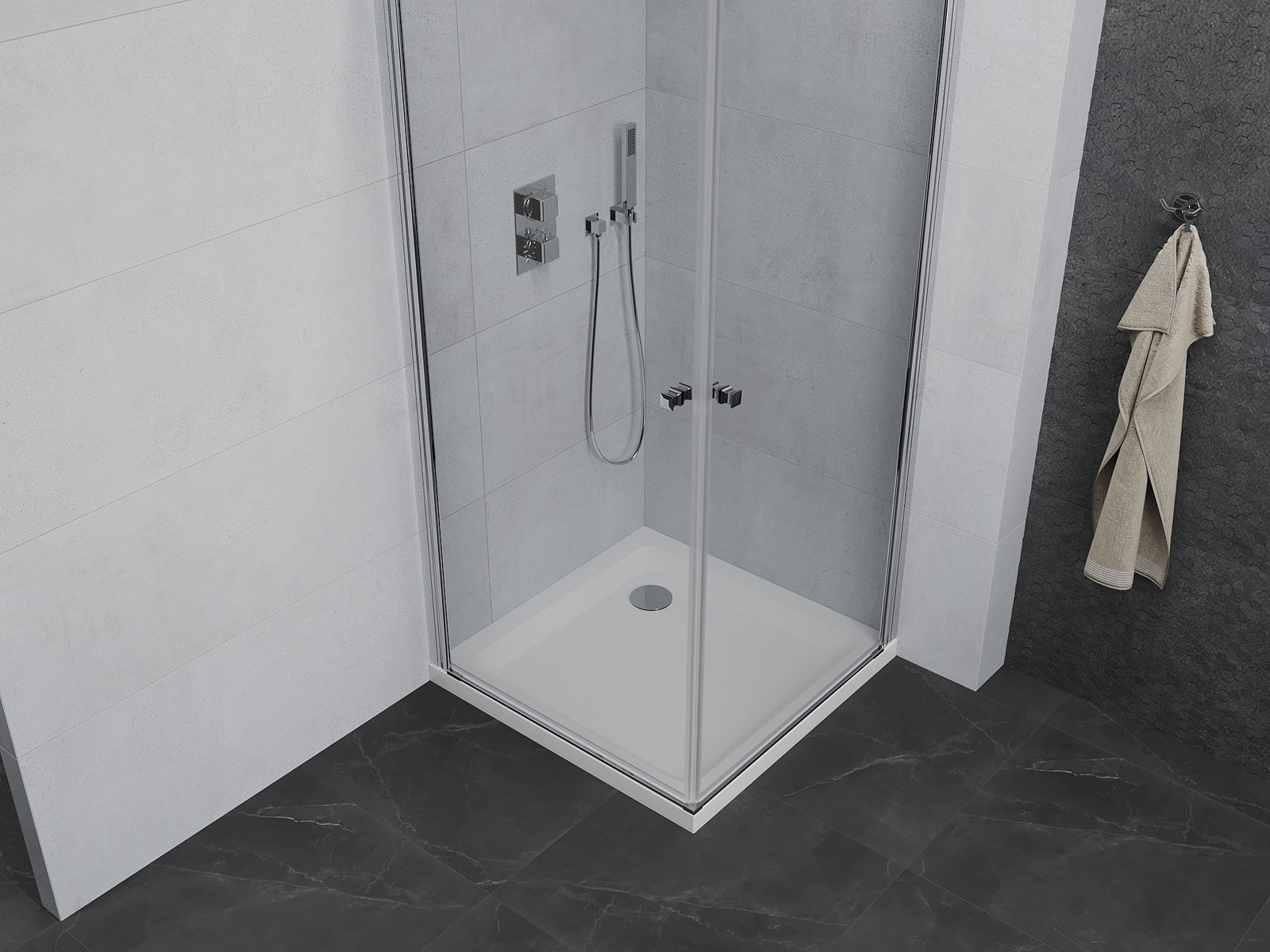 Mexen Pretoria Duo sprchová kabína otváracia 80 x 80 cm, transparentná, chróm + vanička Flat - 852-080-080-01-02-4010