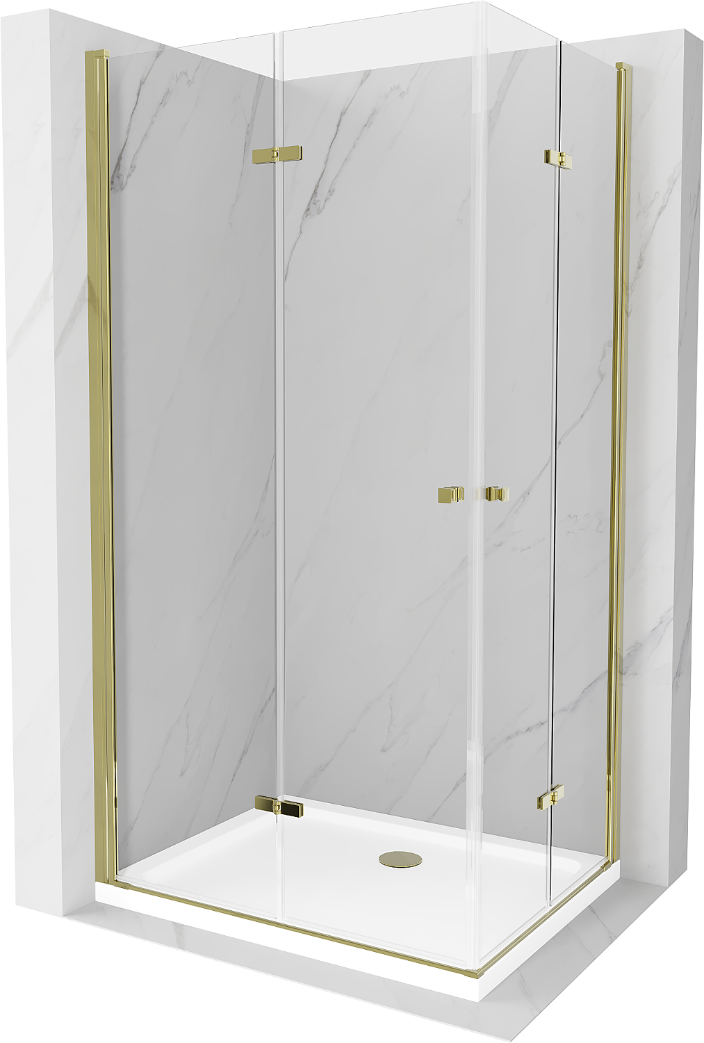 Mexen Lima Duo skladacia sprchová kabína 80 x 70 cm, transparentná, zlatá + vanička Flat - 856-080-070-50-02-4010G