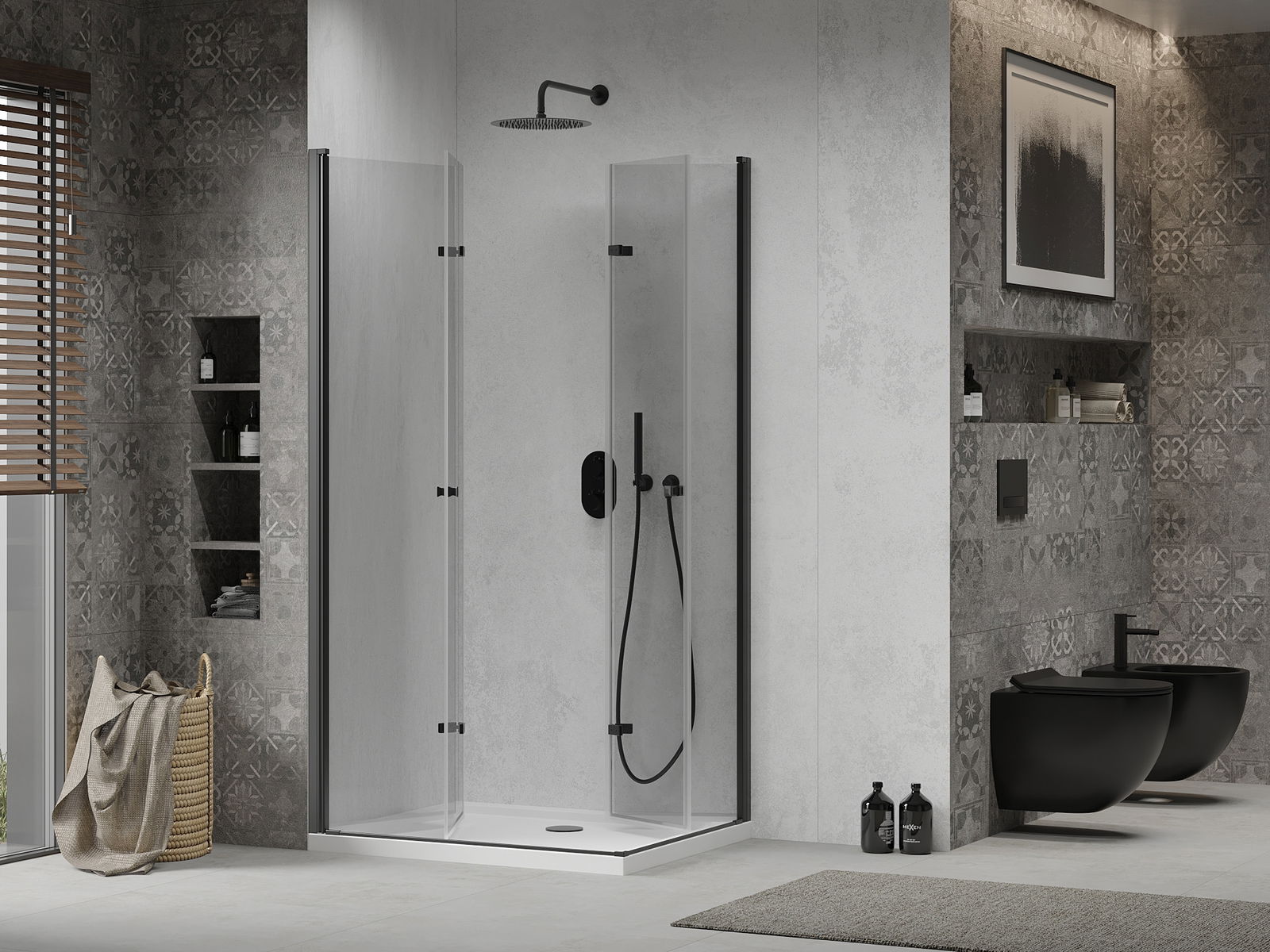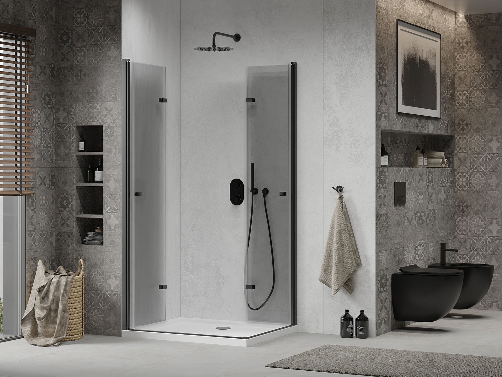 Praktická a pohodlná rukoväť bola vyrobená z odolného a odolného kovu. Módny tvar v kombinácii s povrchom prispôsobeným farbe profilov dodáva celku moderný a štýlový vzhľad, zdôrazňujúc estetiku každej kúpeľne.