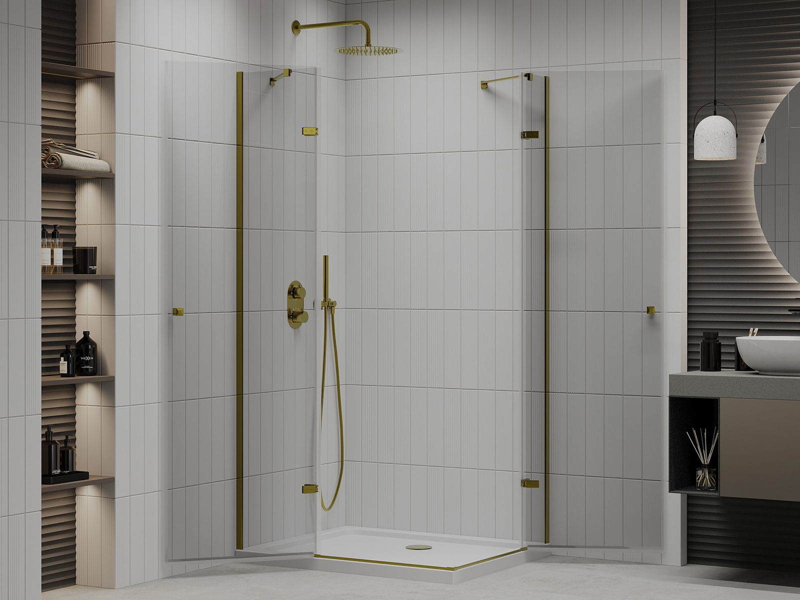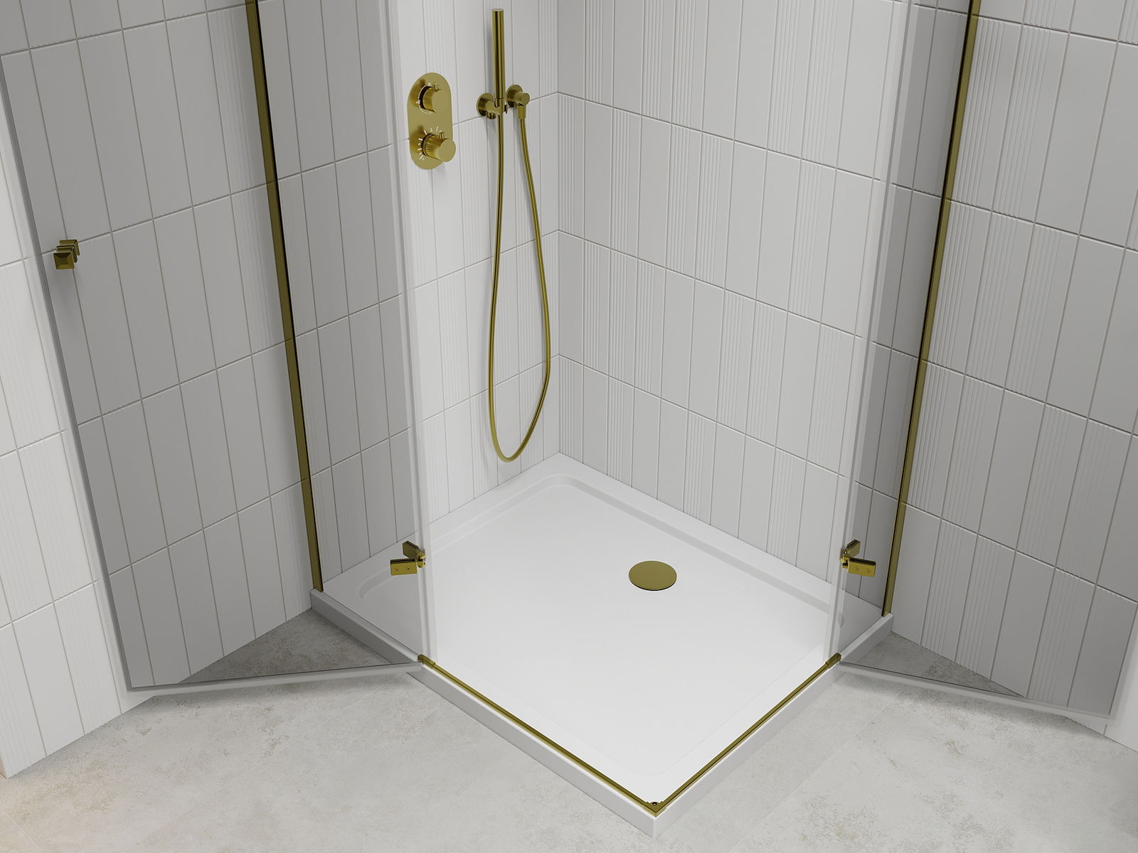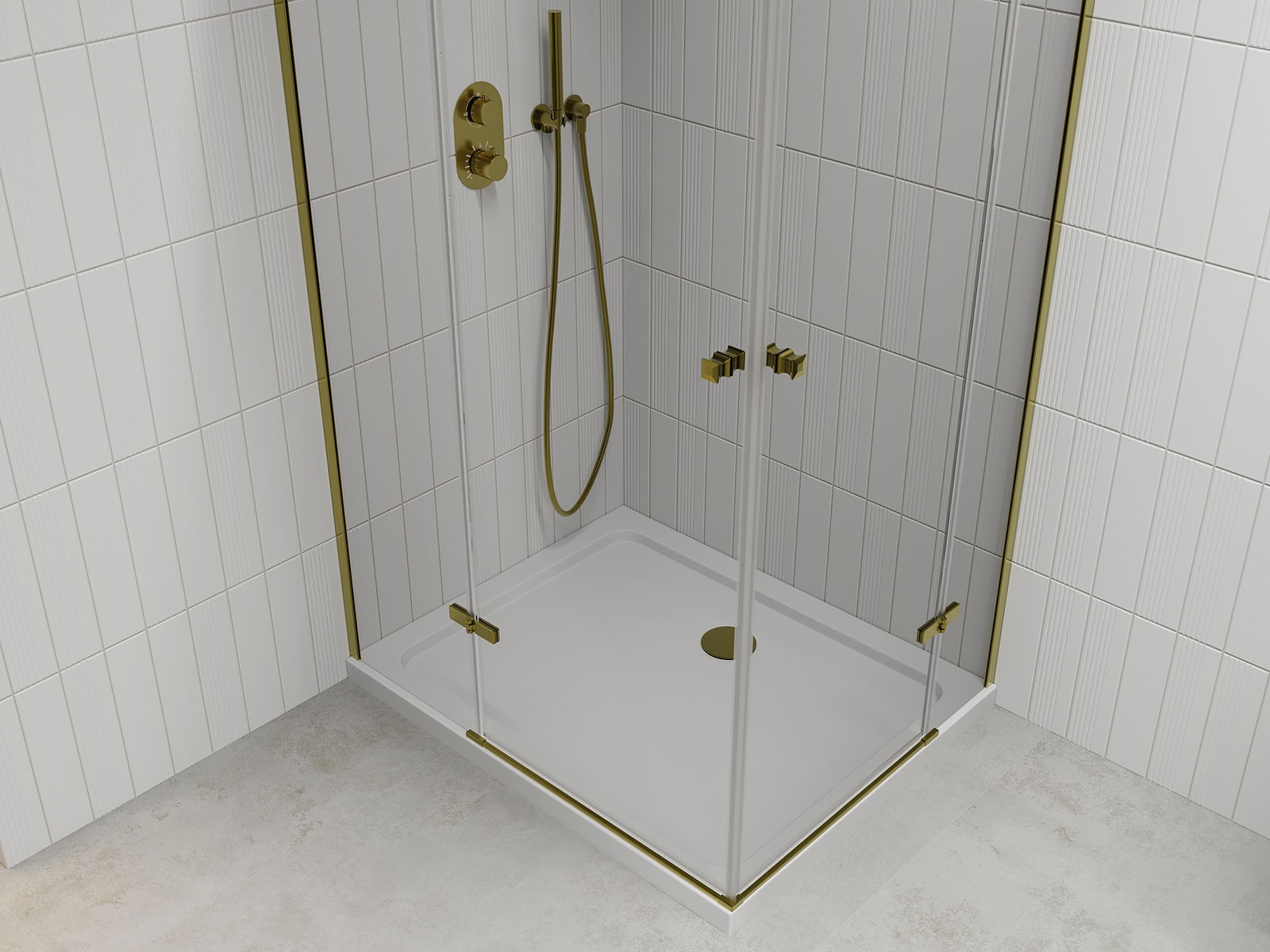 Mexen Roma Duo sprchová kabína s otváracími dverami 100 x 90 cm, priehľadná, zlatá + vanička Flat
