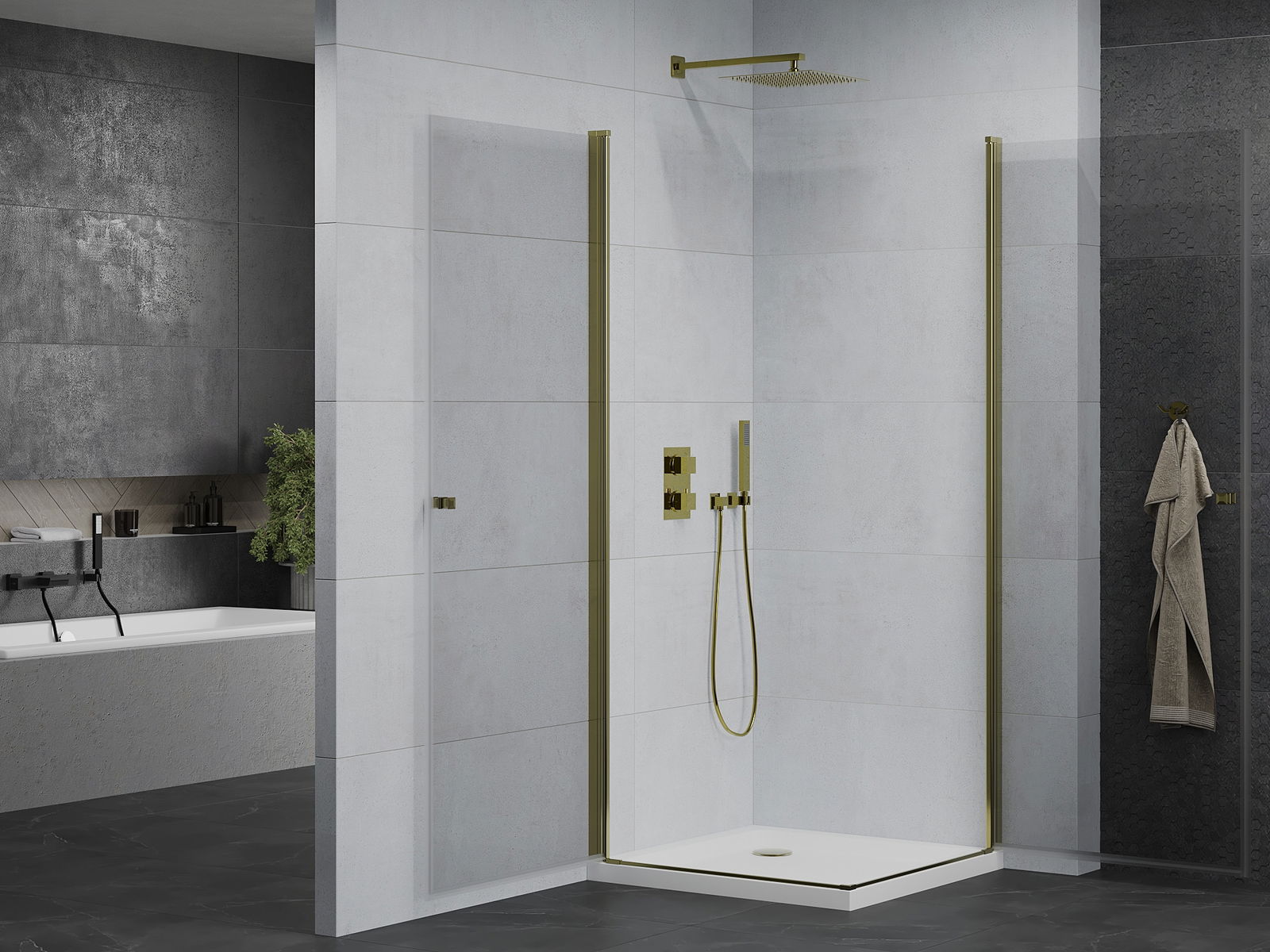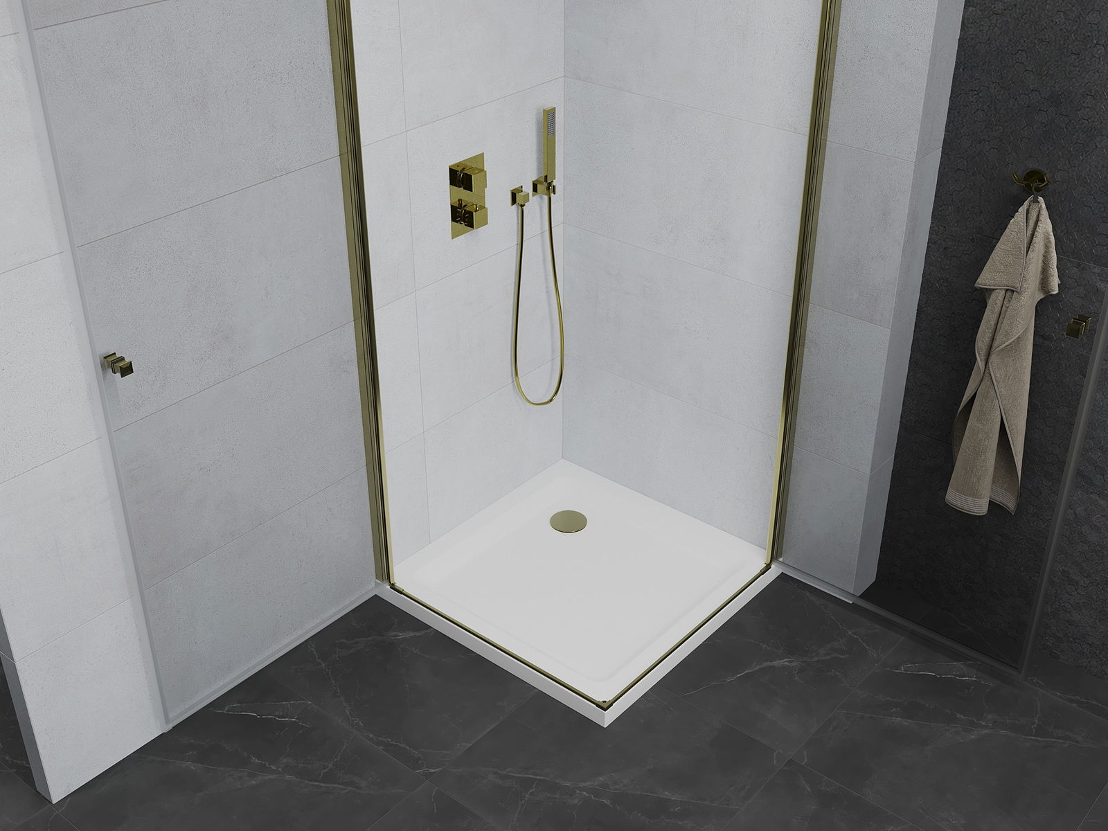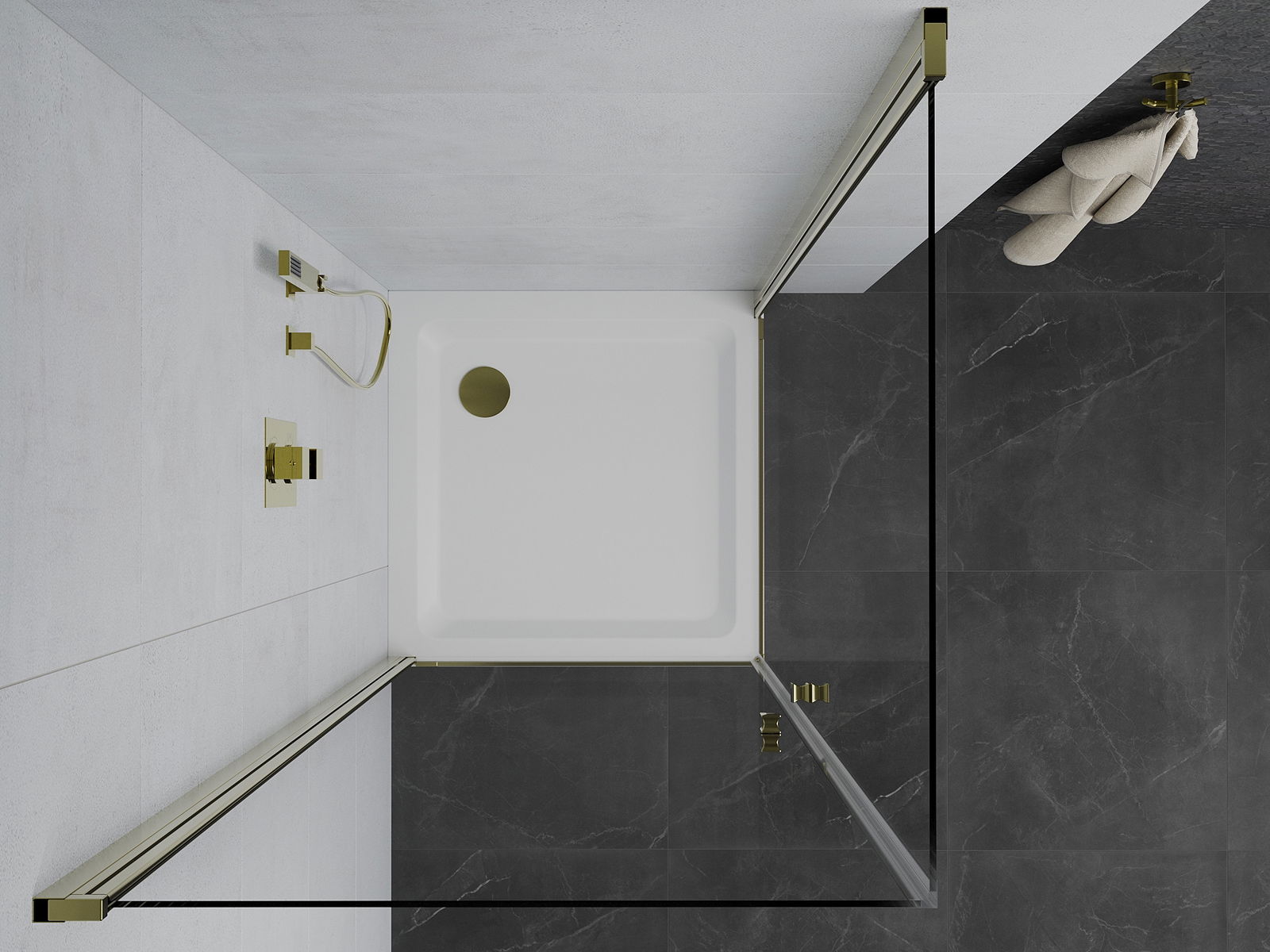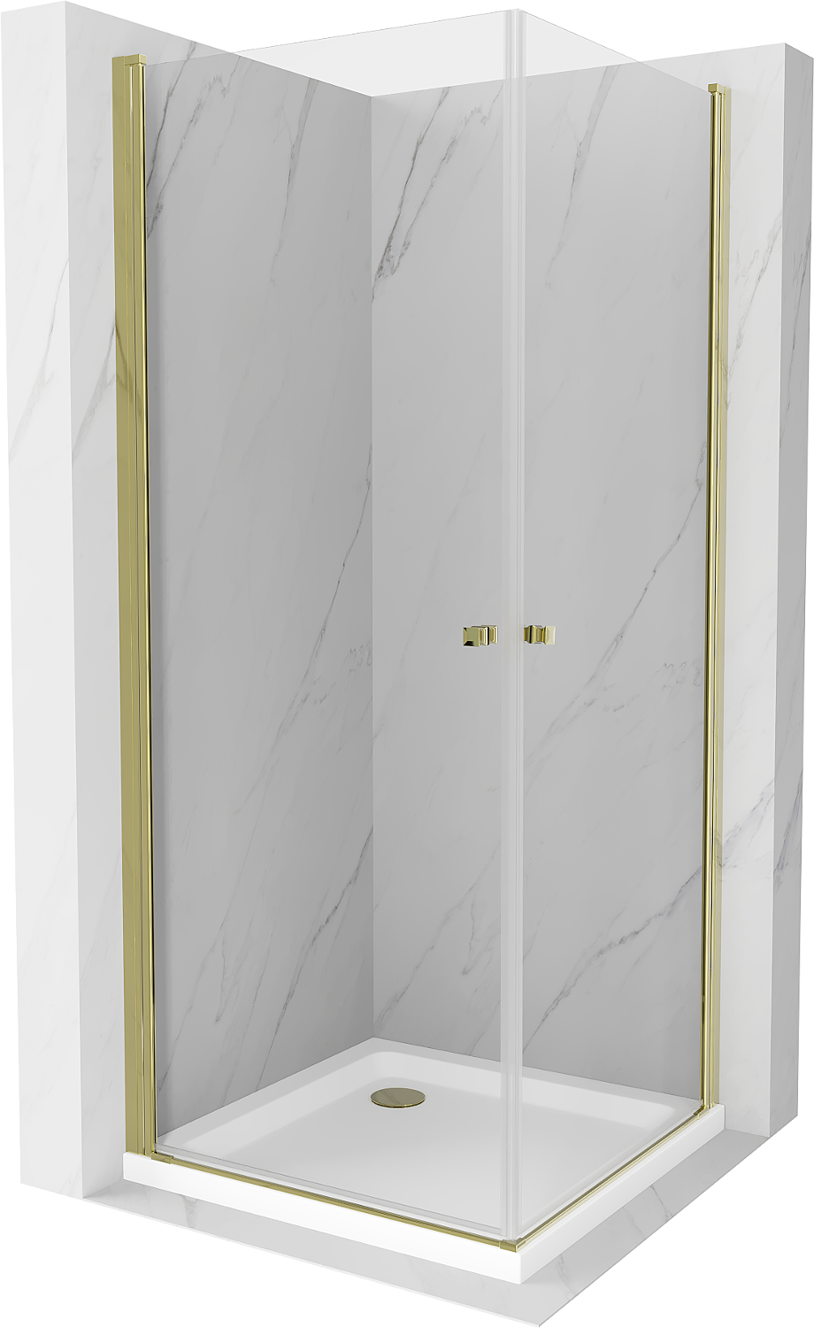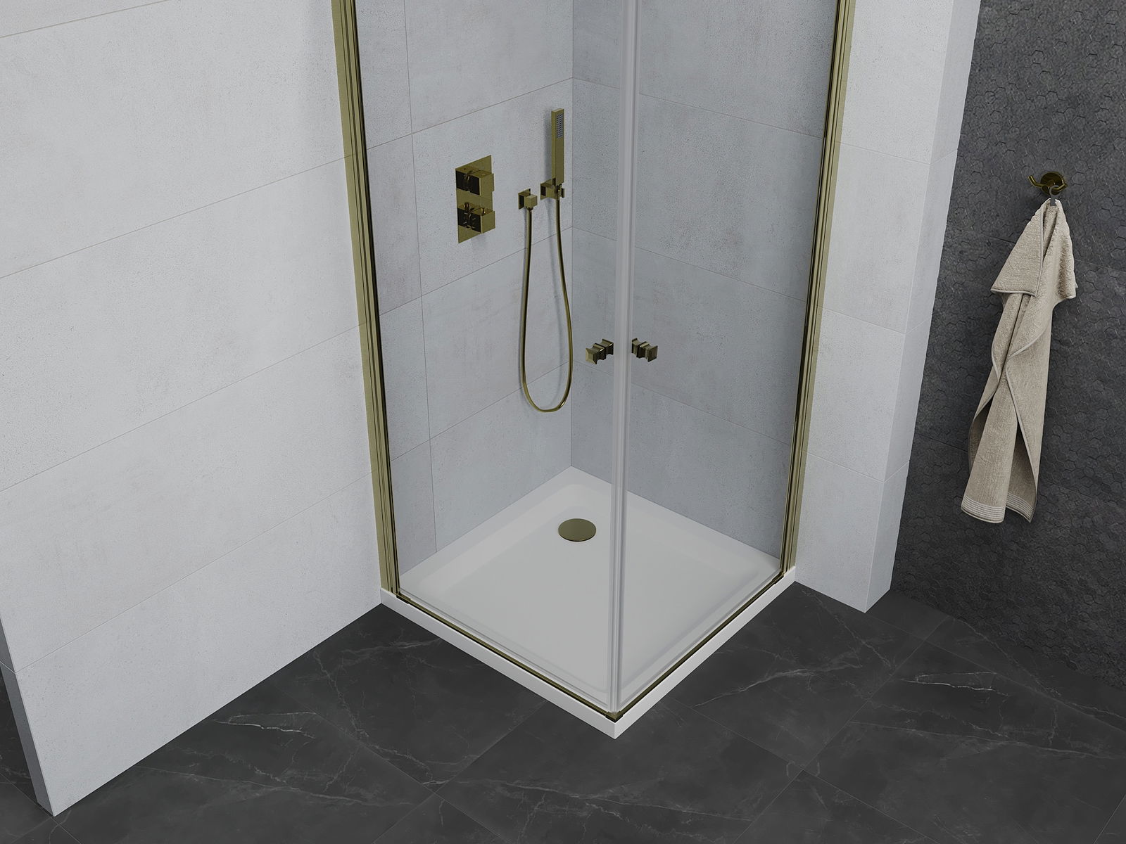 Mexen Pretoria Duo sprchový kút, skladacie dvere 80 x 80 cm, priehľadný, zlatý + vanička Flat - 852-080-080-50-02-4010G