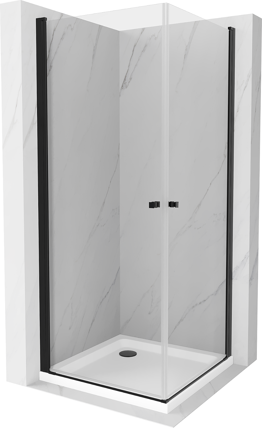 Mexen Pretoria Duo sprchový kút s otváracími dverami 80 x 80 cm, transparentný, čierny + vanička Flat - 852-080-080-70-02-4010B