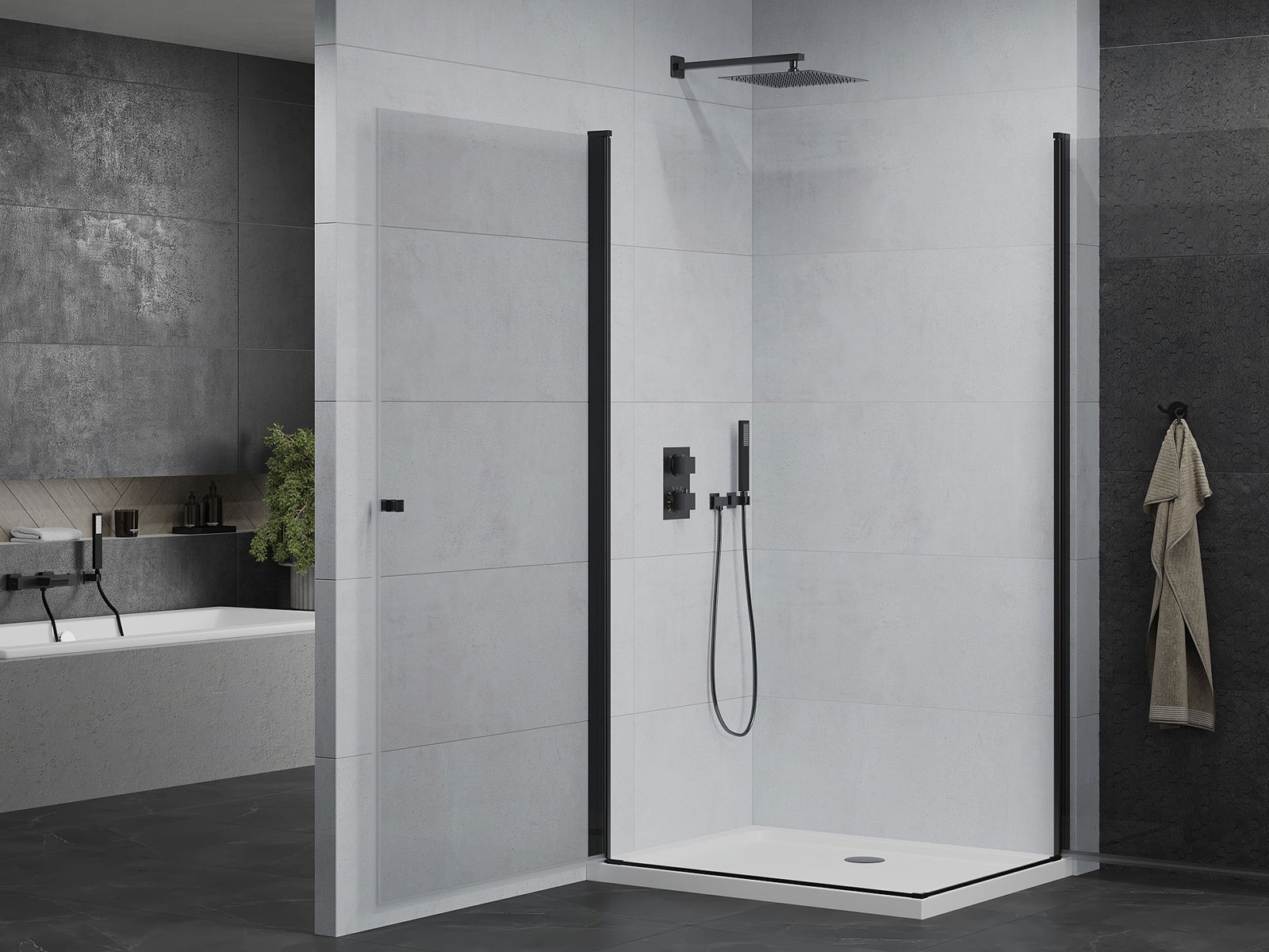 Praktická a pohodlná rukoväť bola vyrobená z odolného a odolného kovu. Módny tvar v kombinácii s povrchom prispôsobeným farbe profilov dodáva celku moderný a štýlový vzhľad, zdôrazňujúc estetiku každej kúpeľne.