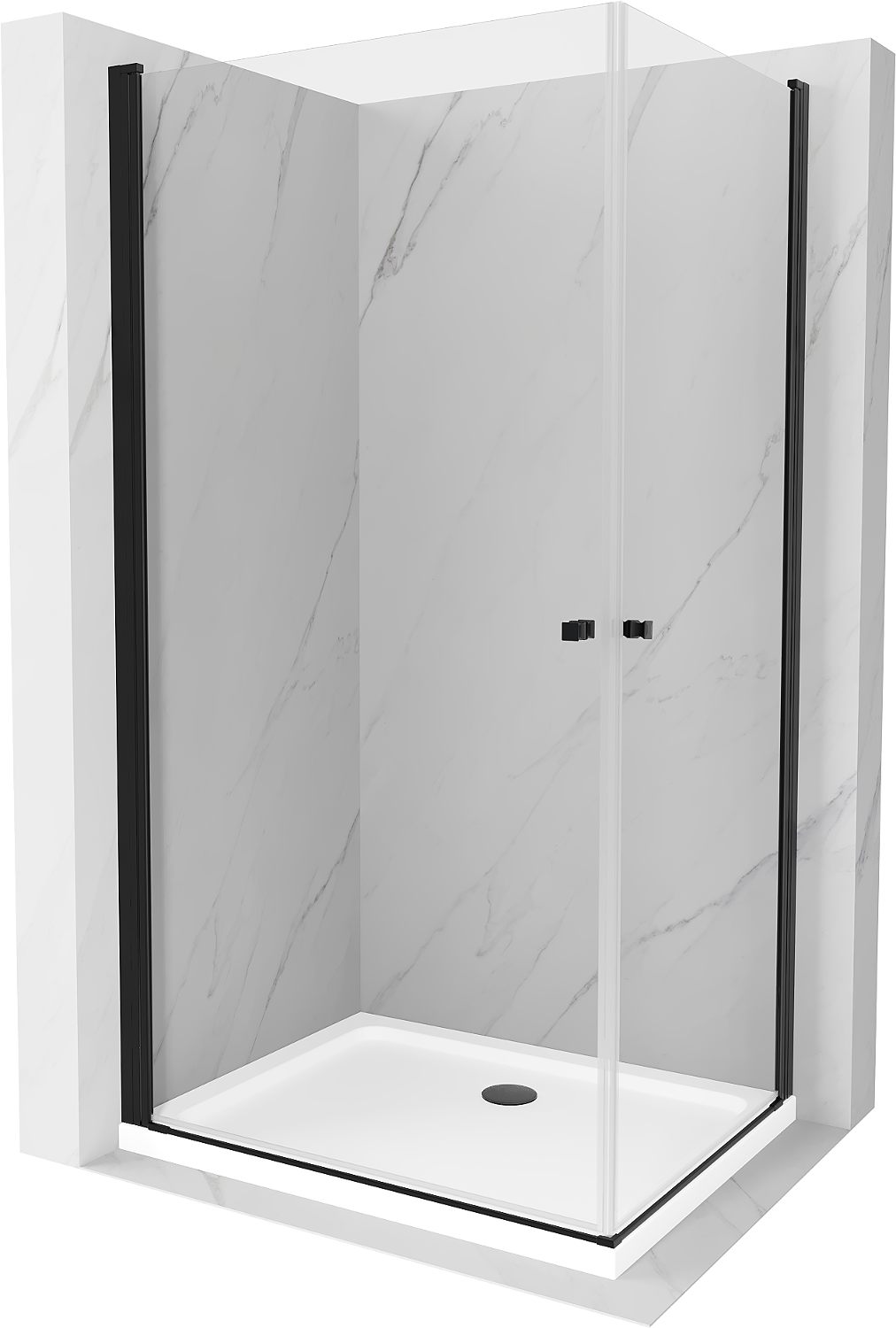 Mexen Pretoria Duo sprchovací kút so sklopnými dverami 90 x 80 cm, priehľadný, čierny + vanička Flat - 852-090-080-70-02-4010B