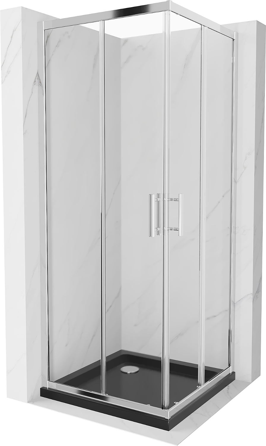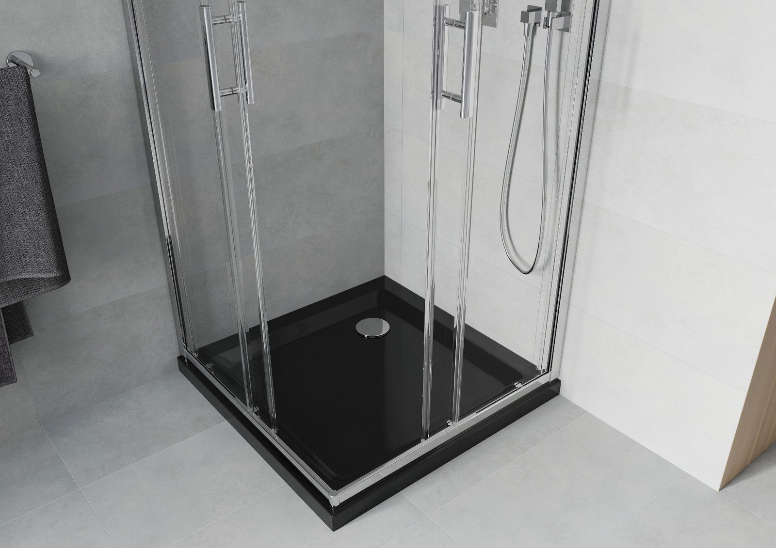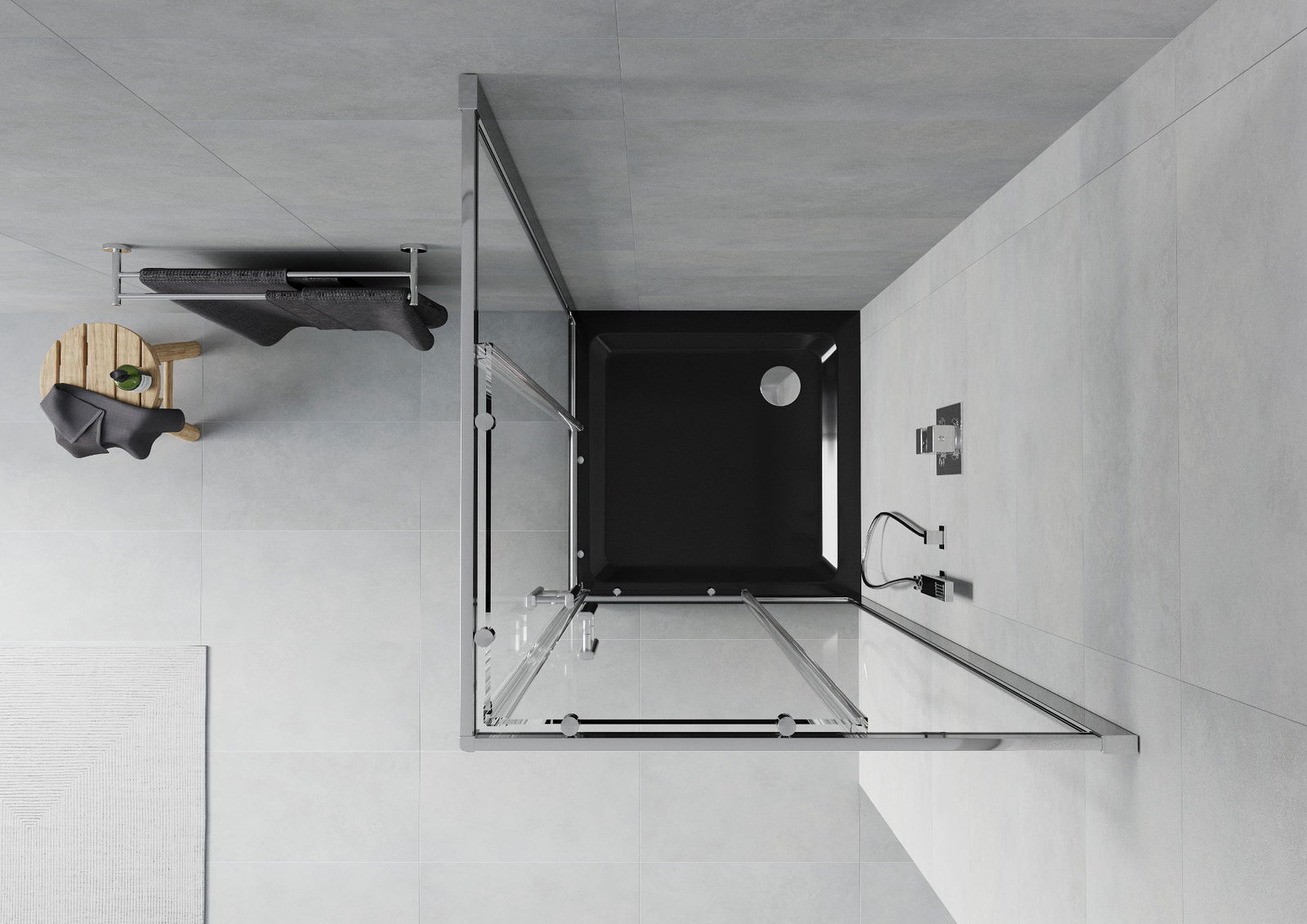 Mexen Rio sprchová kabína štvorcová 80 x 80 cm, transparentná, chróm + vanička Flat, čierna - 860-080-080-01-00-4070