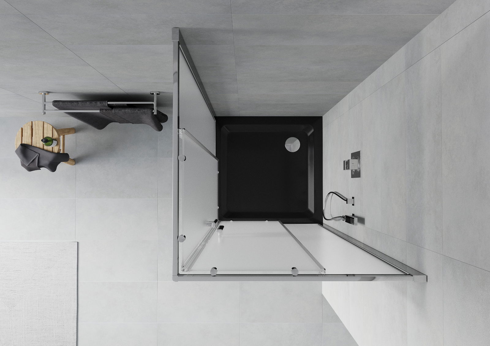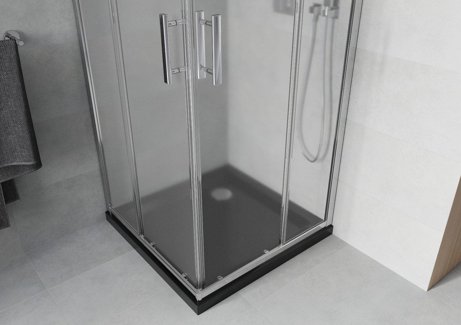 Mexen Rio štvorcový sprchový kút 80 x 80 cm, matný, chróm + vanička Flat, čierny - 860-080-080-01-30-4070