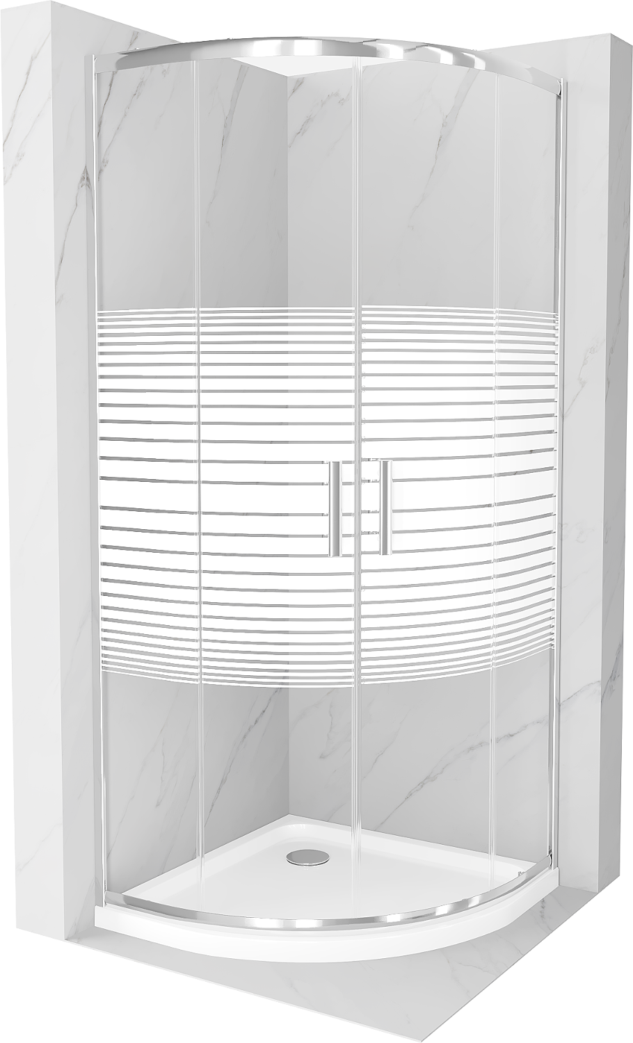 Mexen Rio sprchová kabína polkruhová 90 x 90 cm, biele pruhy, chróm + vanička Flat, biela - 863-090-090-01-20-4110