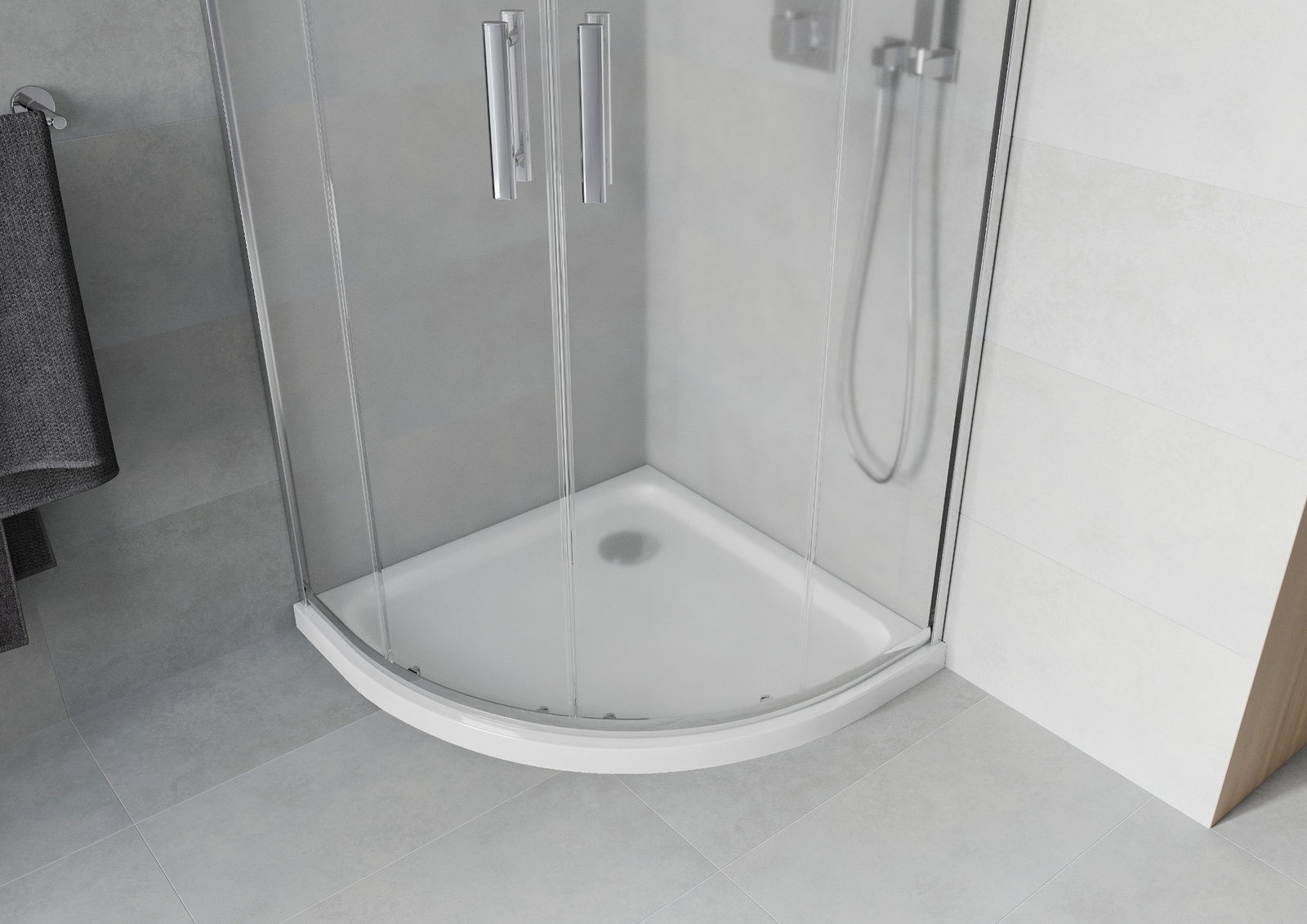 Mexen Rio polkruhová sprchová kabína 80 x 80 cm, matná, chróm + vanička Flat, biela - 863-080-080-01-30-4110
