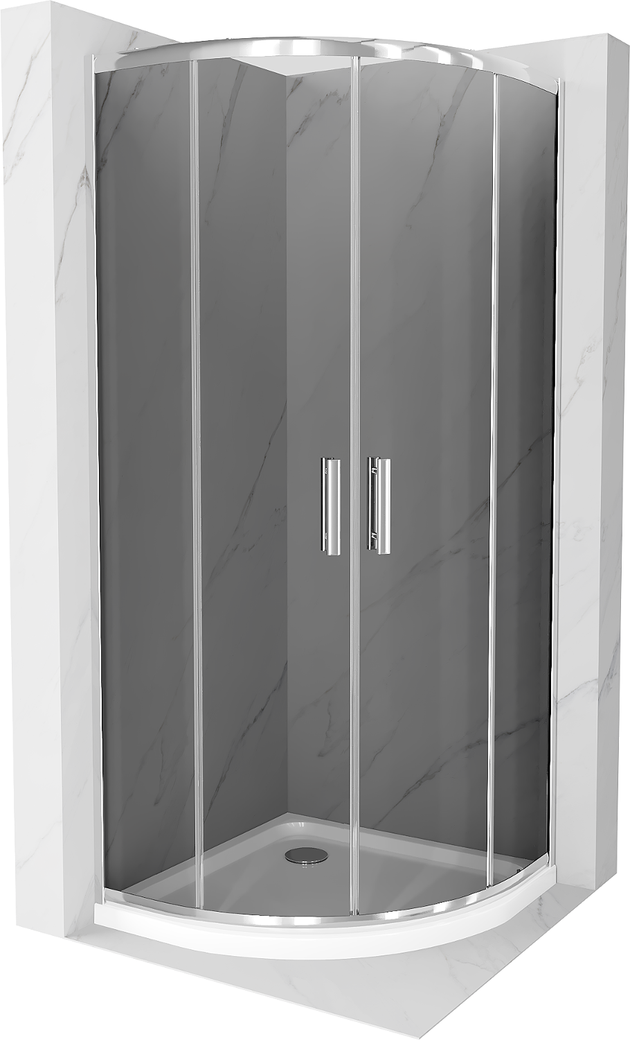 Mexen Rio polkruhová sprchová kabína 80 x 80 cm, grafit, chróm + vanička Flat, biela - 863-080-080-01-40-4110