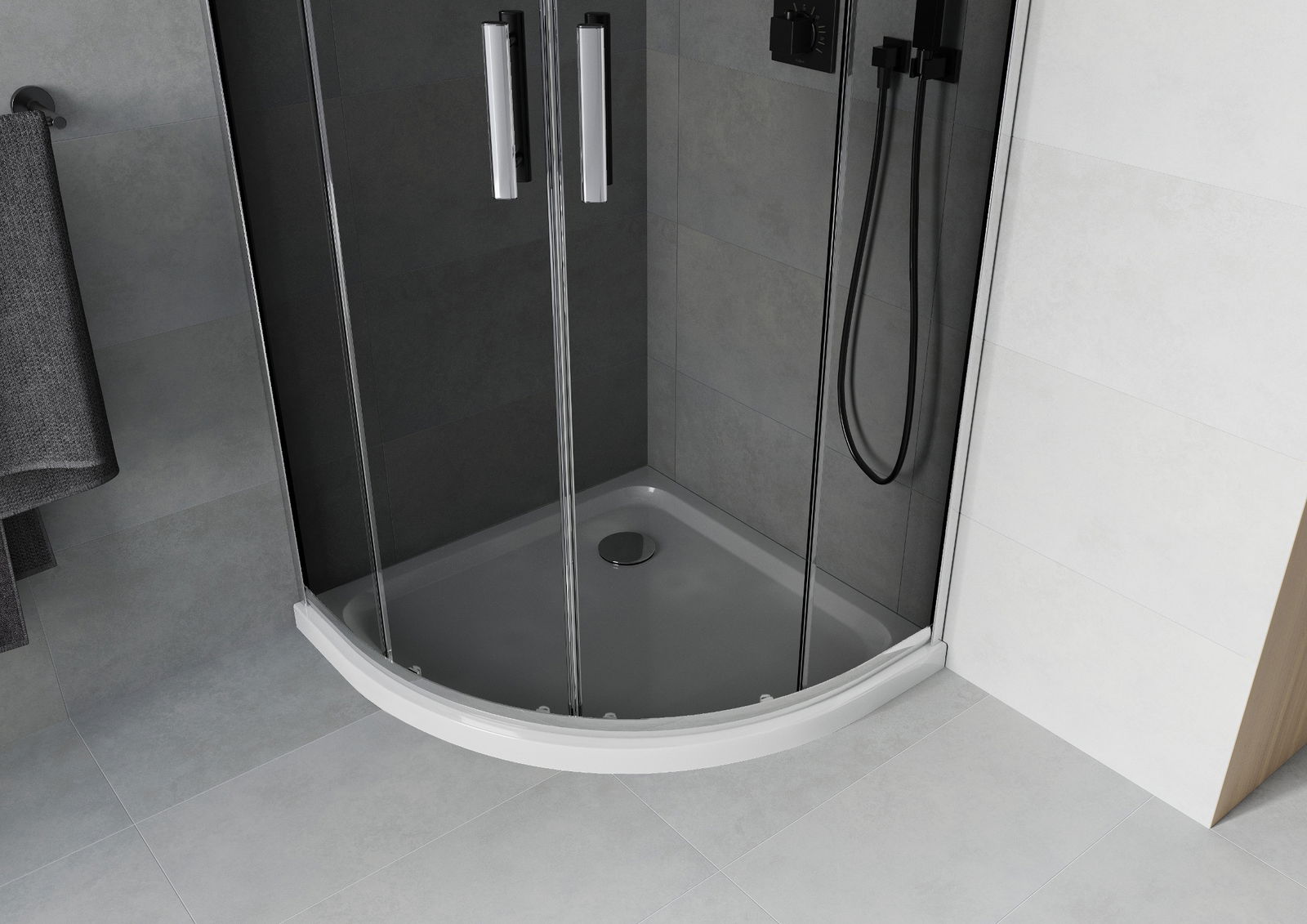Mexen Rio polkruhová sprchová kabína 90 x 90 cm, grafit, chróm + vanička Flat, biela - 863-090-090-01-40-4110