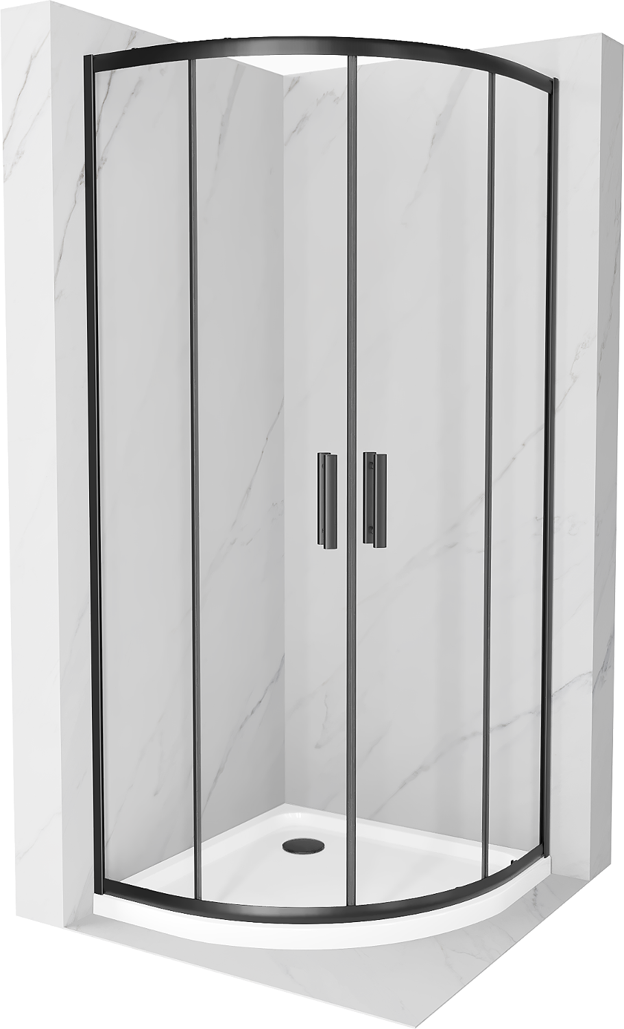Mexen Rio polkruhová sprchová kabína 80 x 80 cm, transparentná, čierna + sprchová vanička Flat, biela - 863-080-080-70-00-4110B