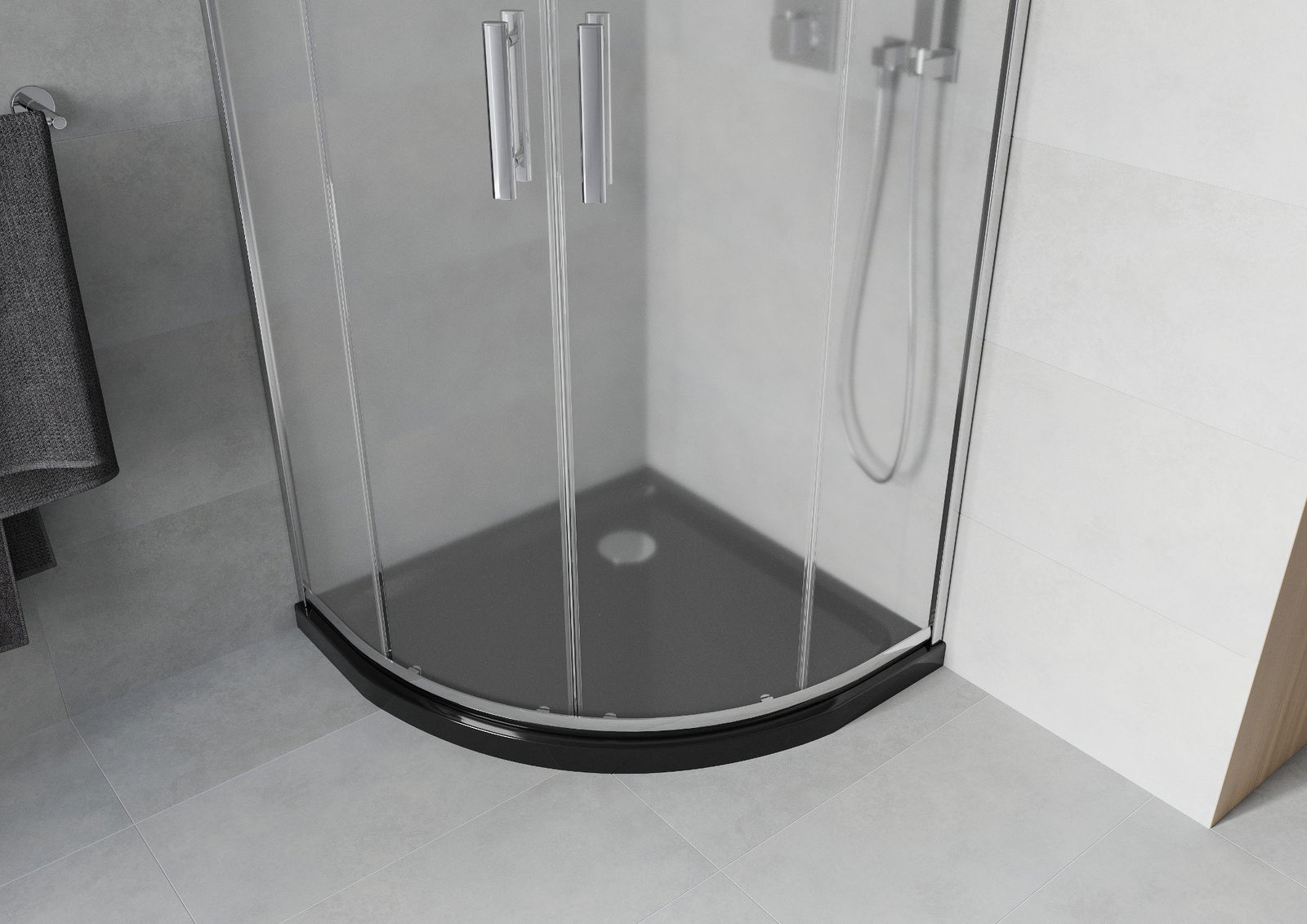 Mexen Rio polkruhová sprchová kabína 80 x 80 cm, transparentná, chróm + sprchová vanička Flat, čierna - 863-080-080-01-00-4170