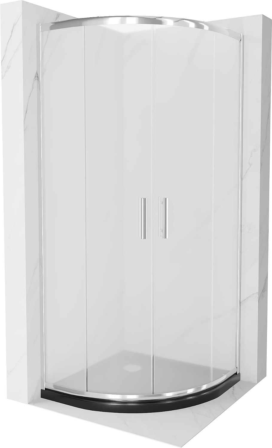 Mexen Rio polkruhová sprchová kabína 80 x 80 cm, mráz, chróm + vanička Flat, čierna - 863-080-080-01-30-4170