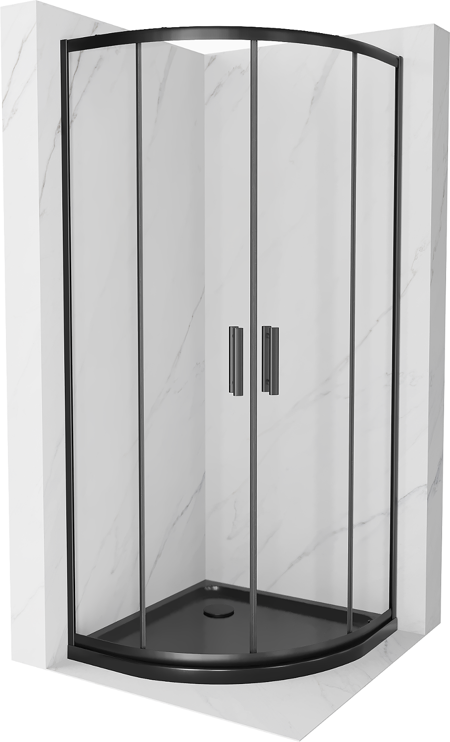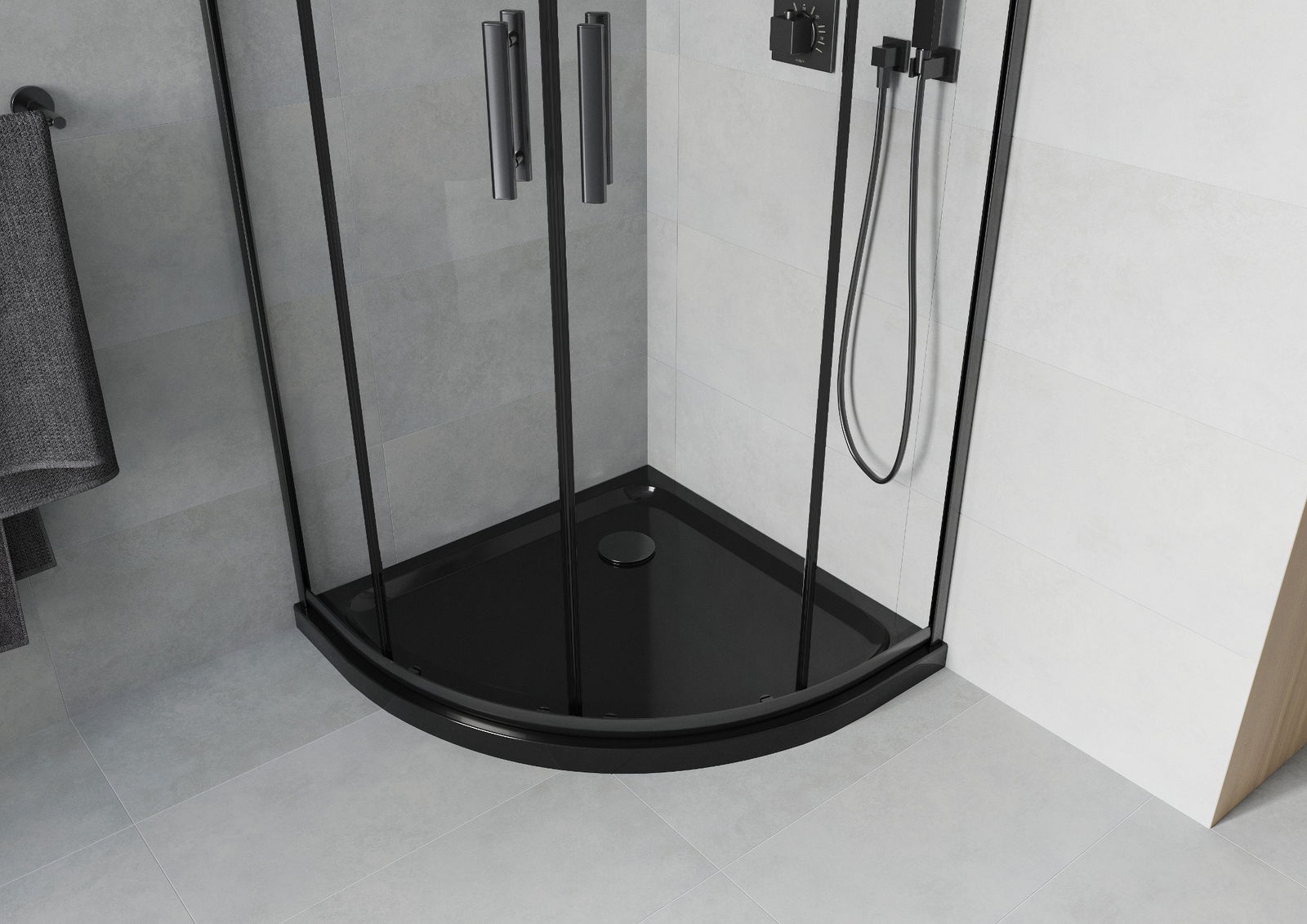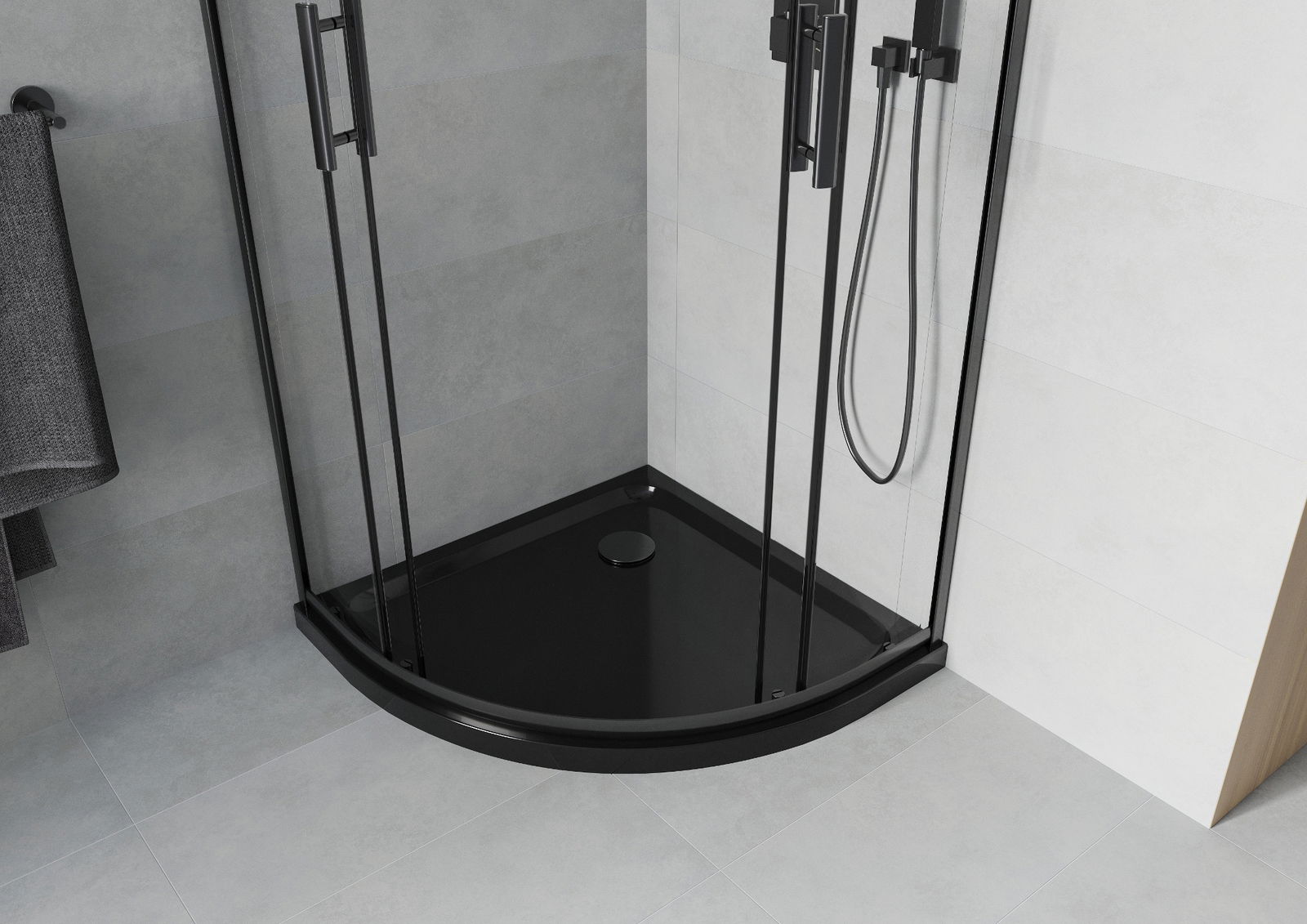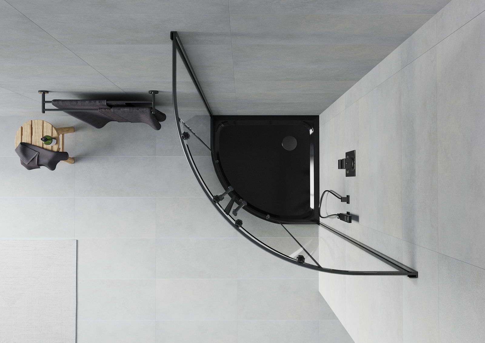 Mexen Rio polkruhová sprchová kabína 80 x 80 cm, transparentná, čierna + vanička Flat, čierna - 863-080-080-70-00-4170B
