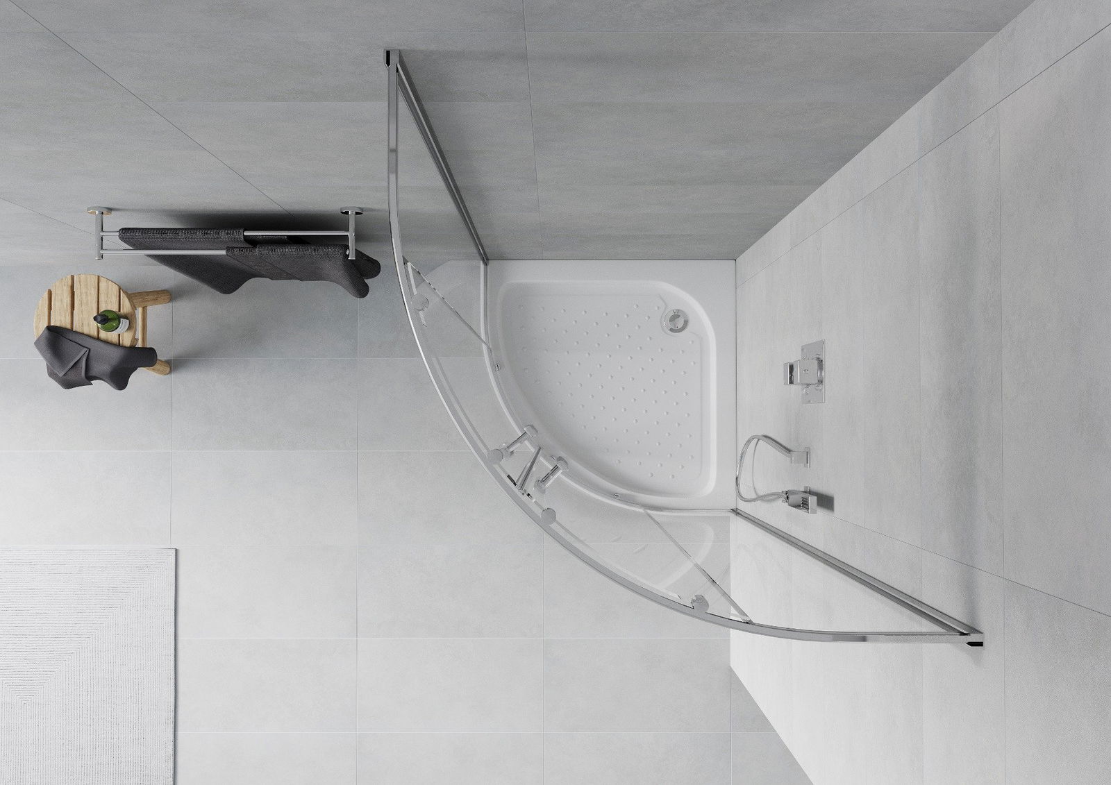 Mexen Rio štvrťkruhová sprchová kabína 70 x 70 cm, transparentná, chróm + sprchová vanička Rio, biela - 863-070-070-01-00-4710