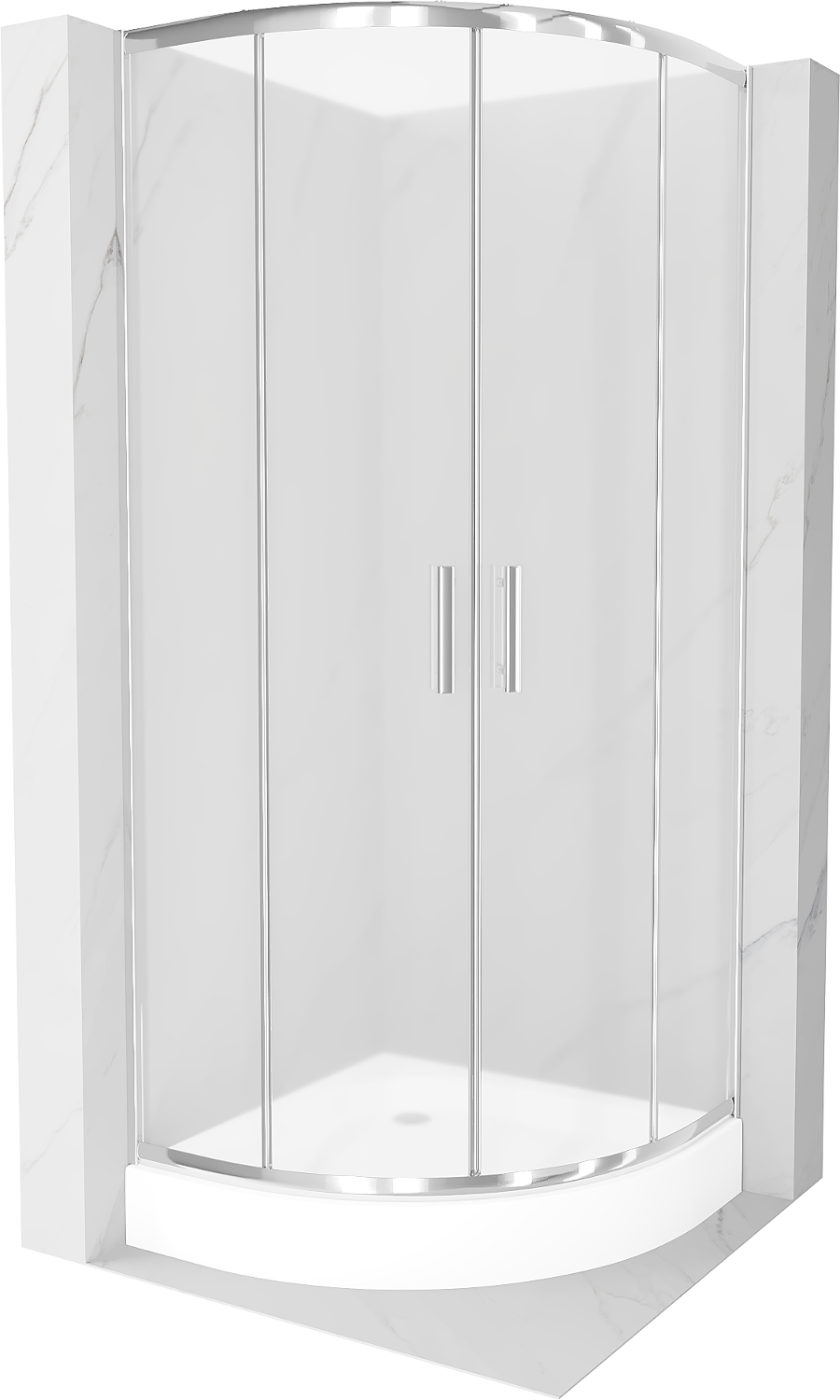 Mexen Rio polkruhová sprchová kabína 90 x 90 cm, mráz, chróm + vanička Rio, biela - 863-090-090-01-30-4710