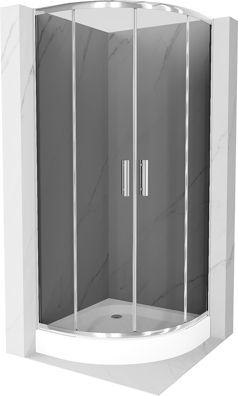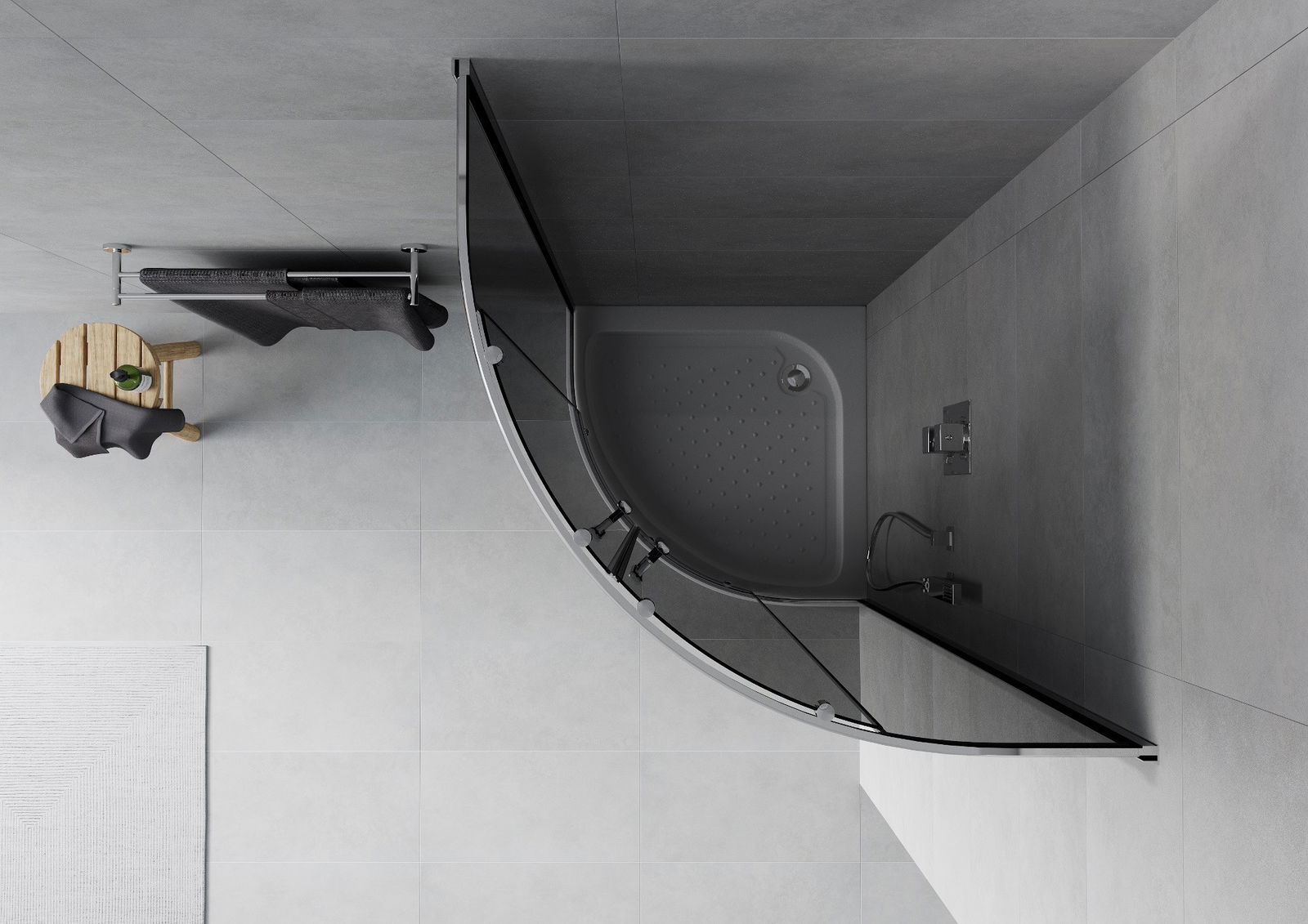 Mexen Rio polkruhová sprchová kabína 70 x 70 cm, grafitová, chrómová + sprchová vanička Rio, biela - 863-070-070-01-40-4710