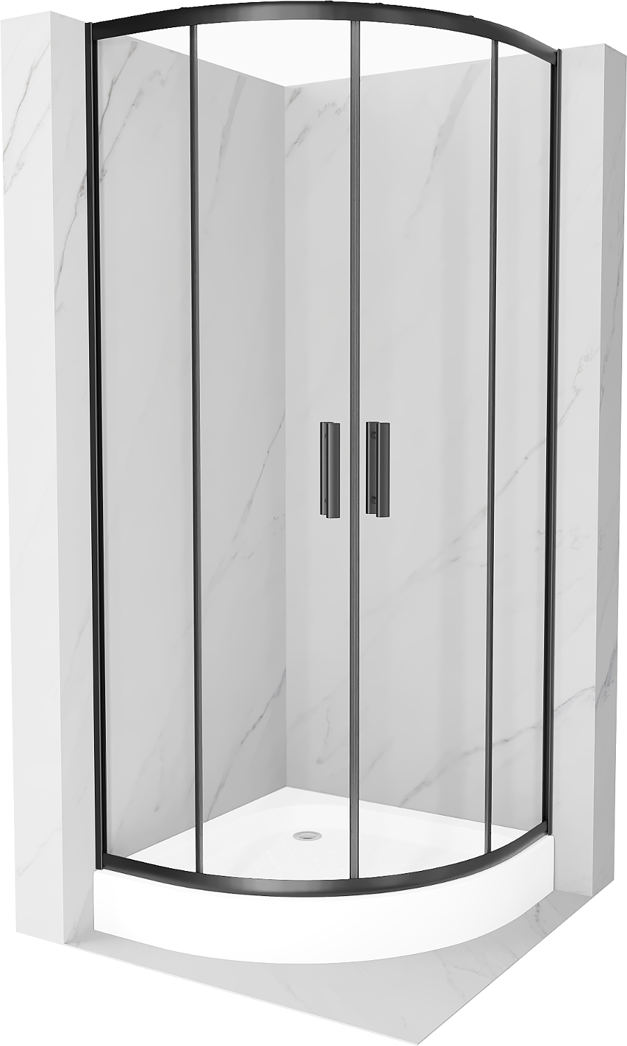 Mexen Rio polkruhová sprchová kabína 70 x 70 cm, transparentná, čierna + sprchová vanička Rio, biela - 863-070-070-70-00-4710