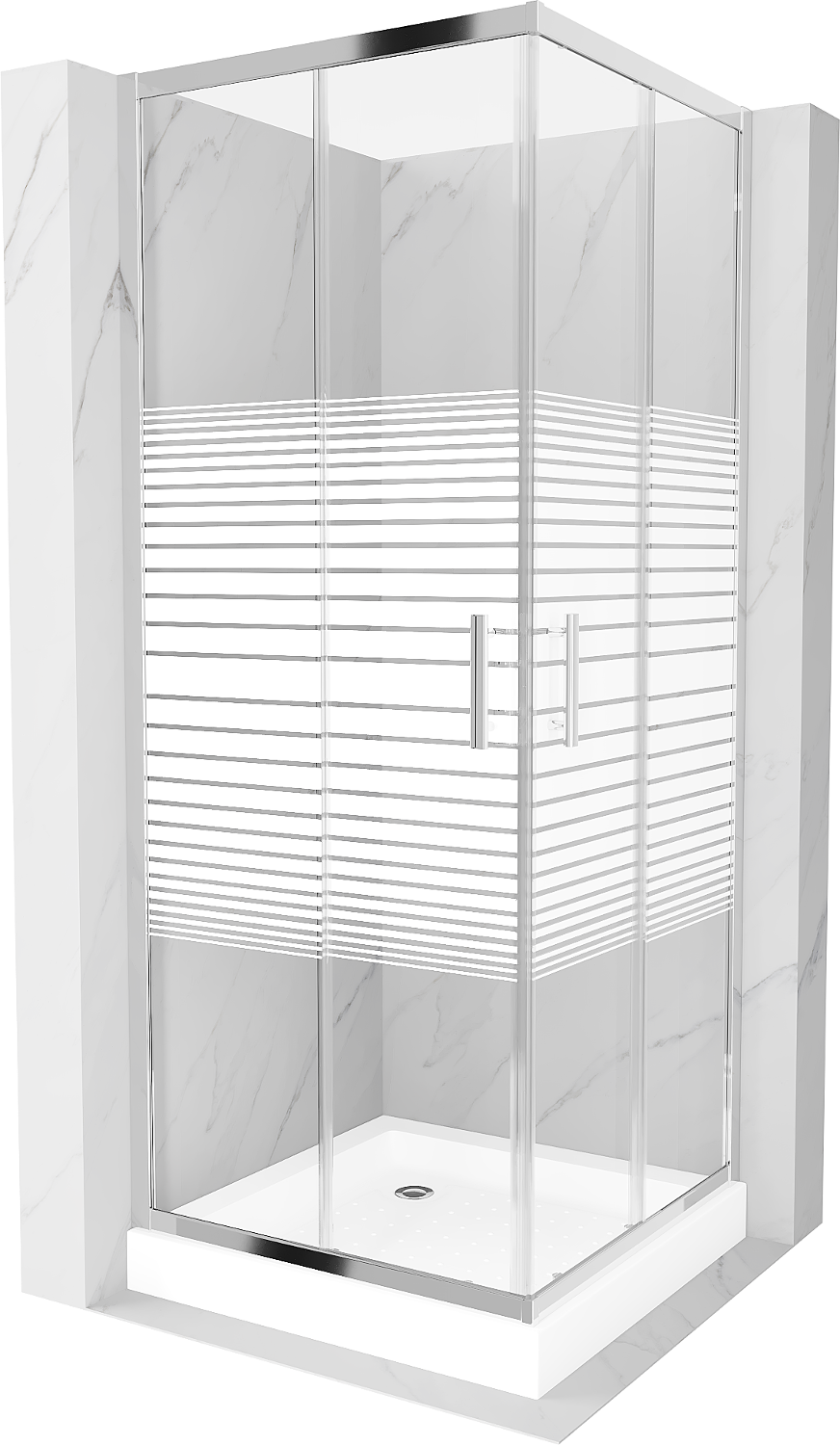 Mexen Rio štvorcová sprchová kabína 80 x 80 cm, biele pruhy, chróm + vanička Rio, biela - 860-080-080-01-20-4510