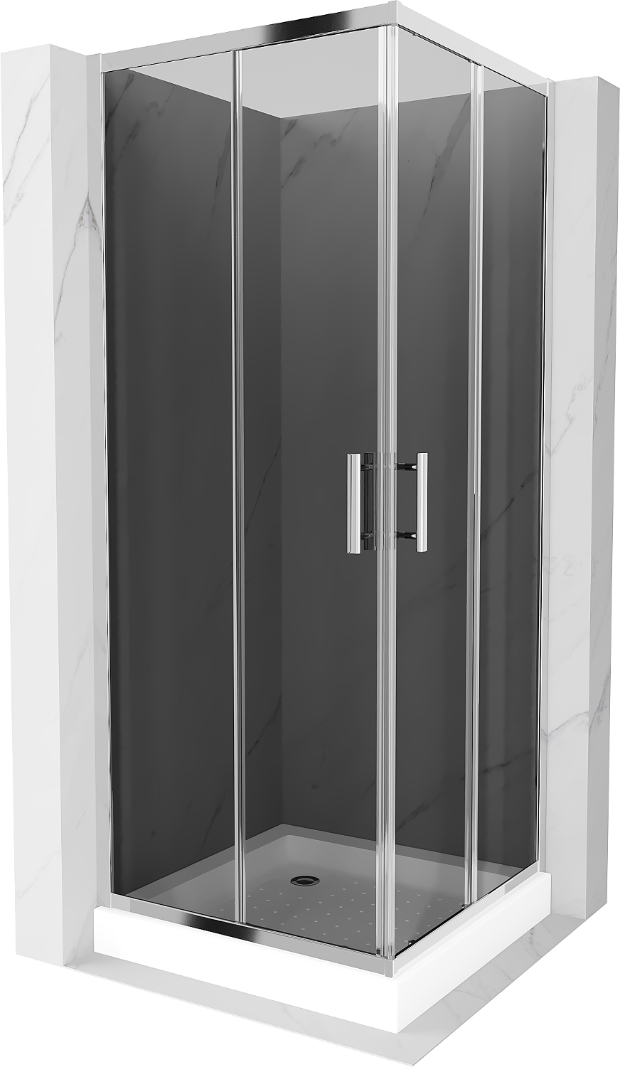 Mexen Rio štvorcová sprchová kabína 80 x 80 cm, grafit, chróm + vanička Rio, biela - 860-080-080-01-40-4510