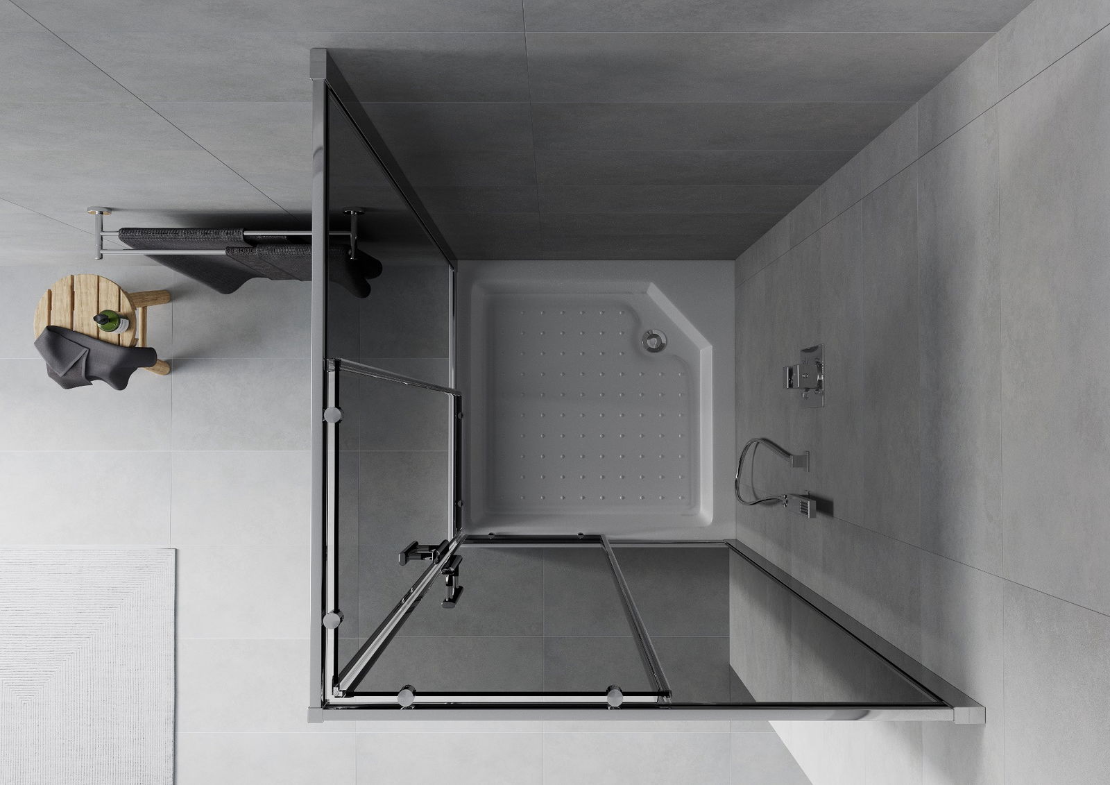 Mexen Rio štvorcový sprchový kút 90 x 90 cm, grafit, chróm + sprchová vanička Rio, biela - 860-090-090-01-40-4510