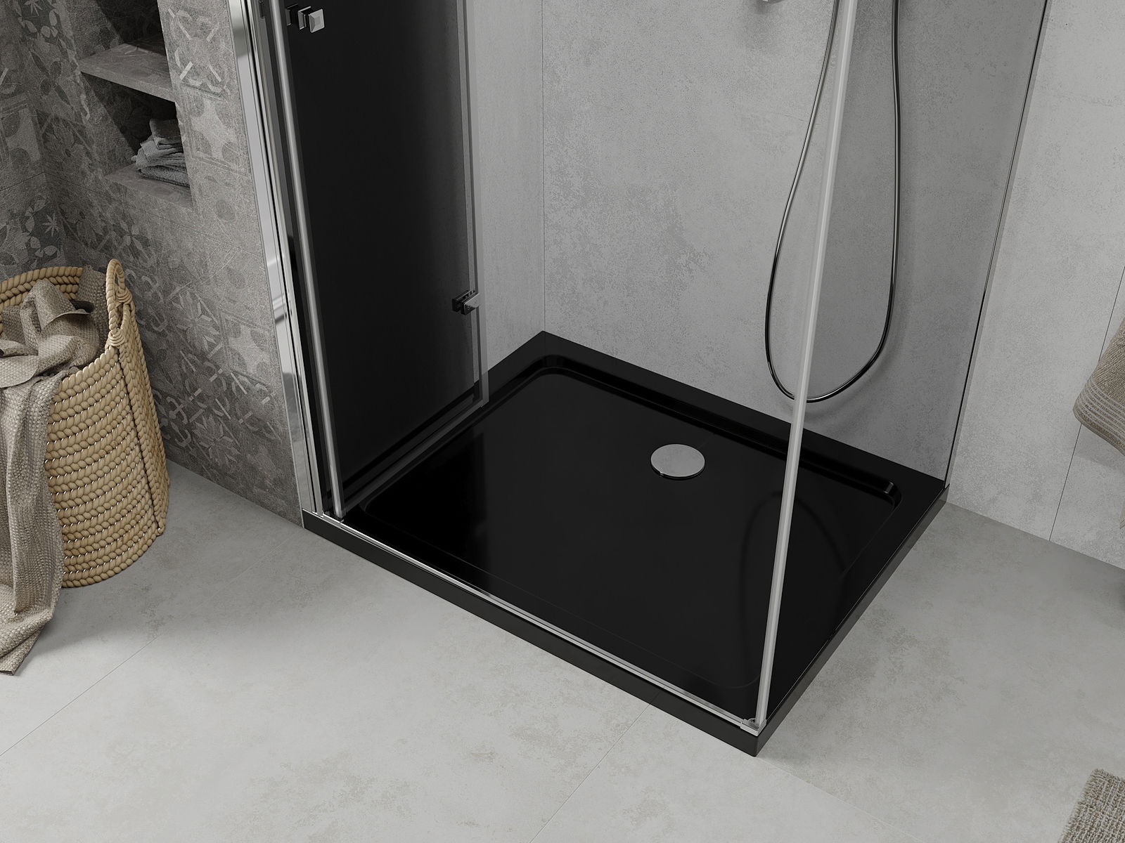 Mexen Lima skladacia sprchová kabína 90 x 100 cm, grafit, chróm + sprchová vanička Flat, čierna - 856-090-100-01-40-4070
