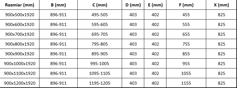 Veľkosť: 90x90 cm (dvere 90 cm, stena 90 cm)
