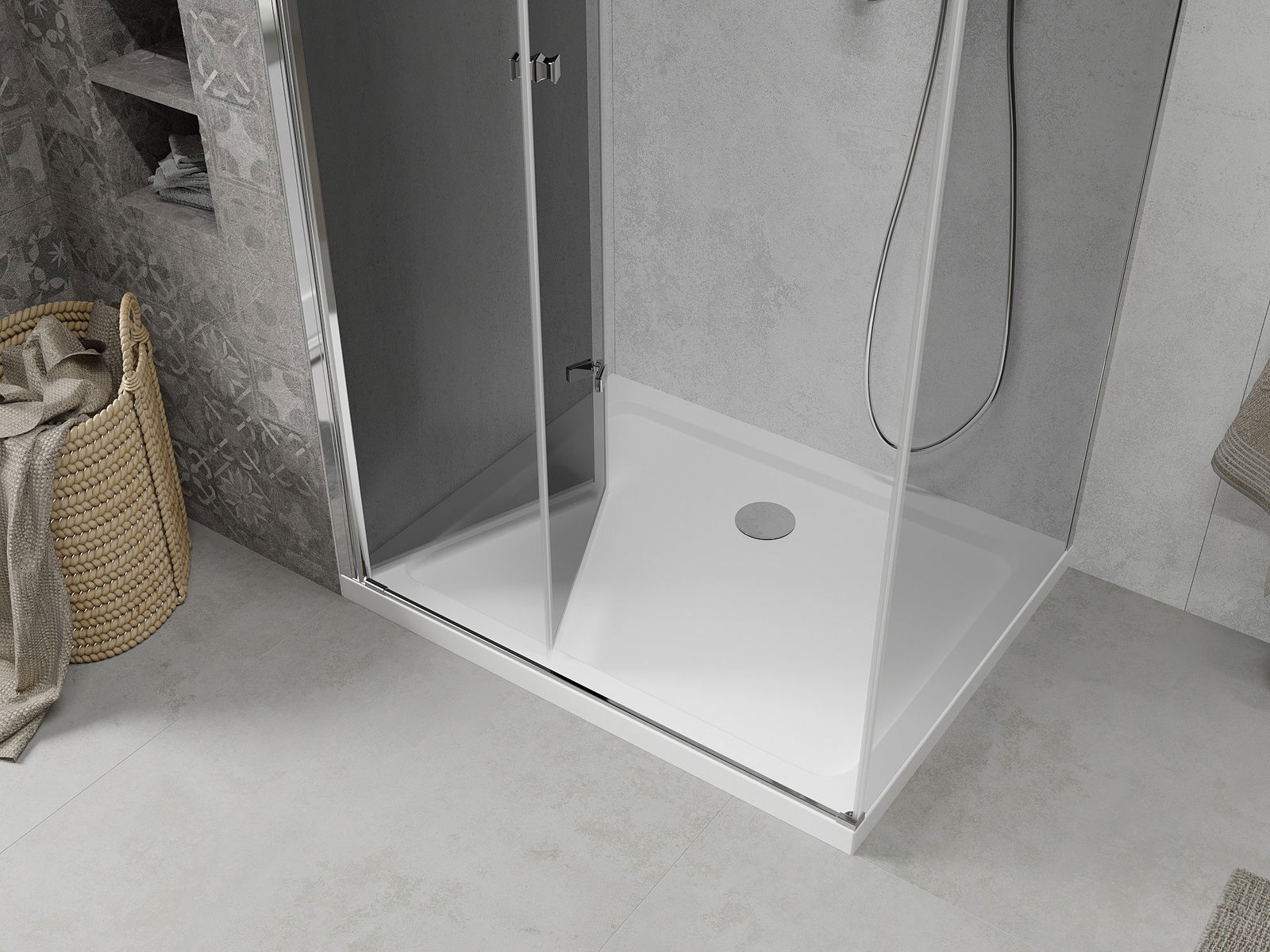 Schopnosť zložiť dvere vonku aj vo vnútri vám umožňuje získať viac priestoru, keď nepoužívate sprchu. Je to ideálne riešenie pre menšie kúpeľne, maximálne pomocou dostupného povrchu.