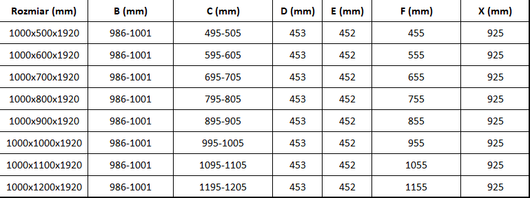 Veľkosť: 100x110 cm (dvere 100 cm, stena 110 cm)