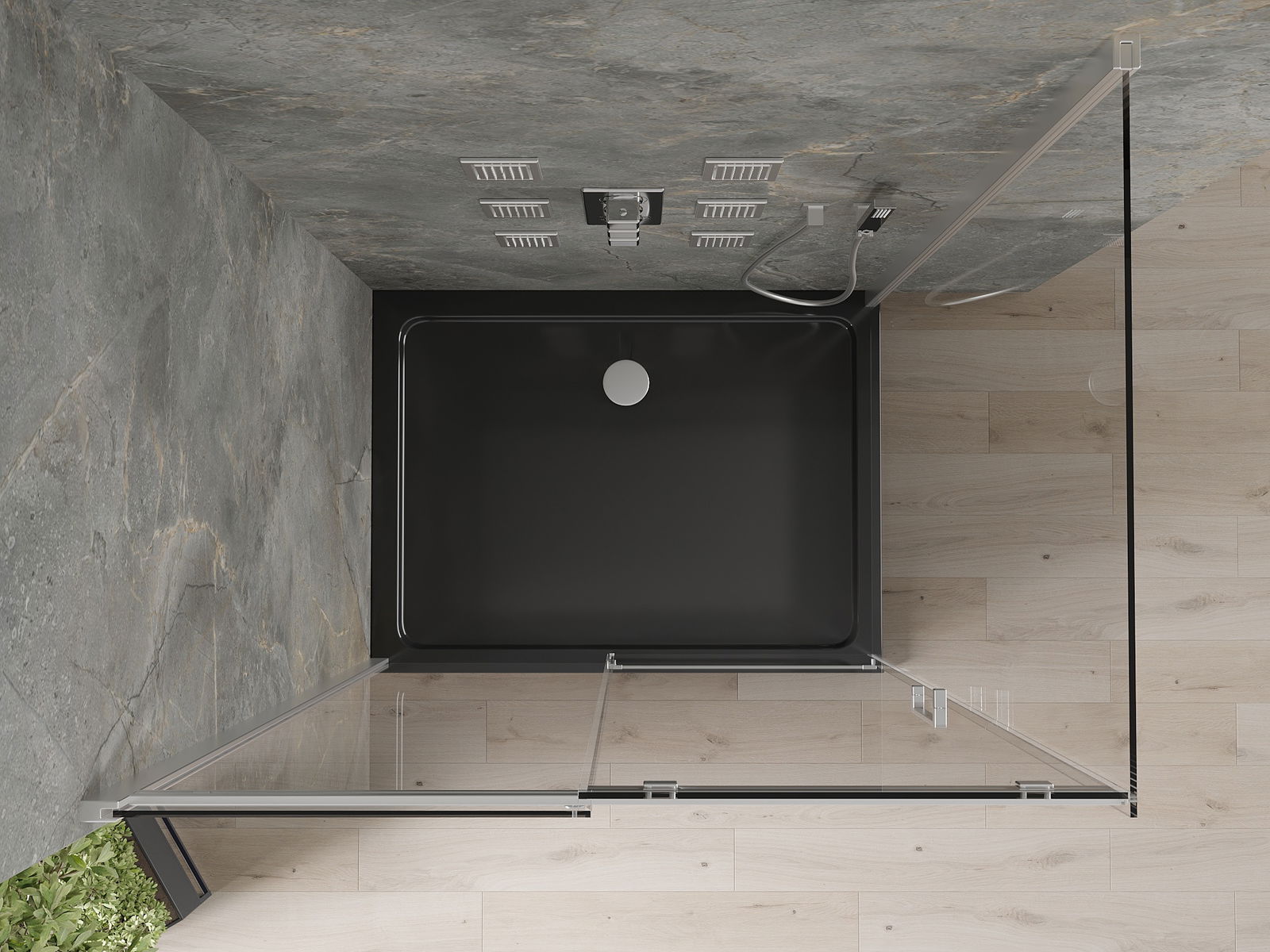 Mexen Omega sprchová kabína posuvná 120 x 80 cm, transparentná, chróm + vanička Flat, čierna - 825-120-080-01-00-4070