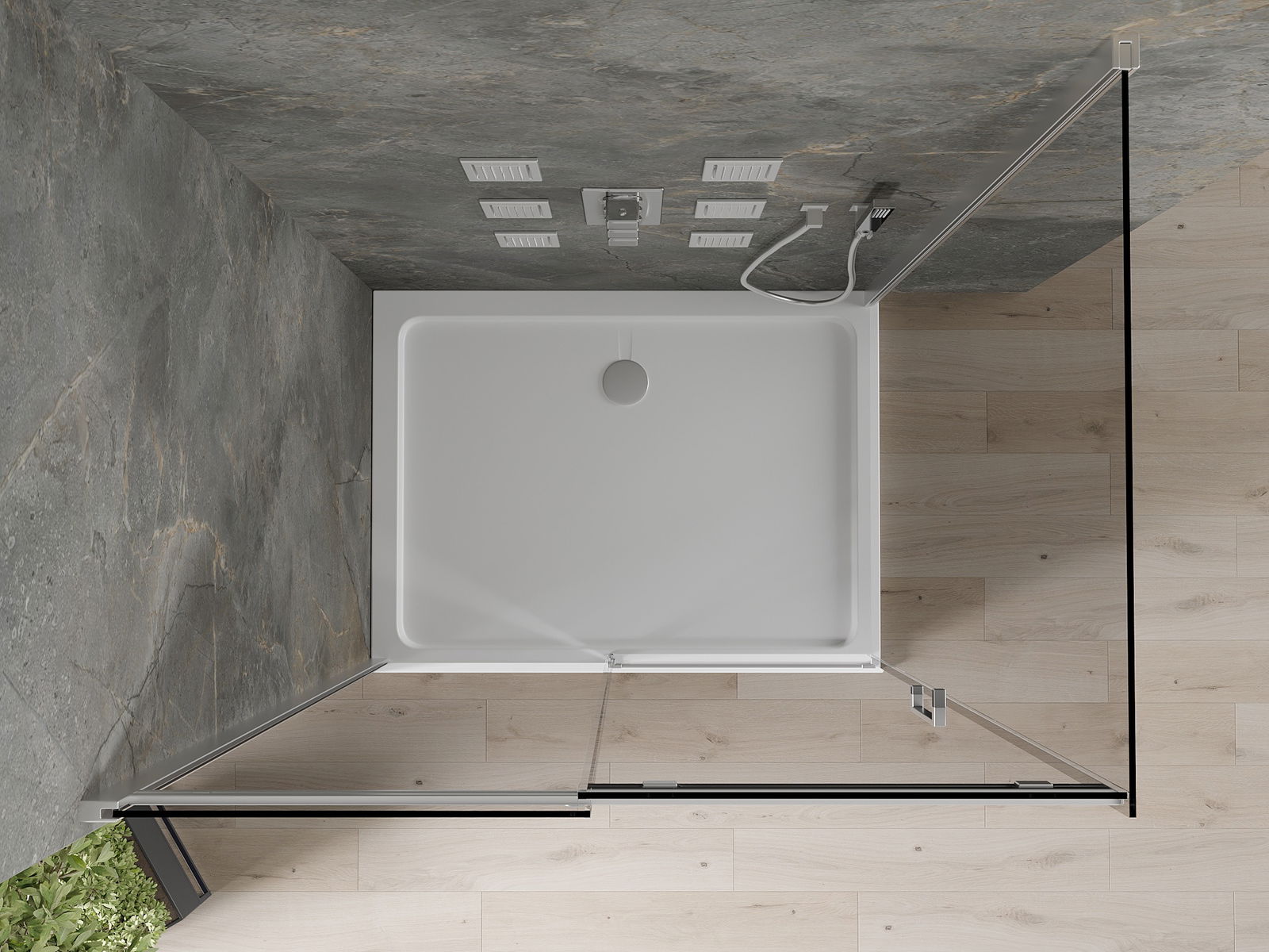 Posuvné dvere sa pohybujú po špeciálnych koľajniciach a nevyžadujú dodatočný priestor na otvorenie, preto sú ideálne pre menšie kúpeľne. Vďaka dvojitým kolieskam s kovovým telom je ich pohyb plynulý.