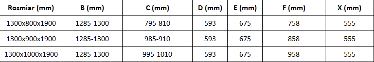 Veľkosť: 130x80 cm (dvere 130 cm, stena 80 cm)