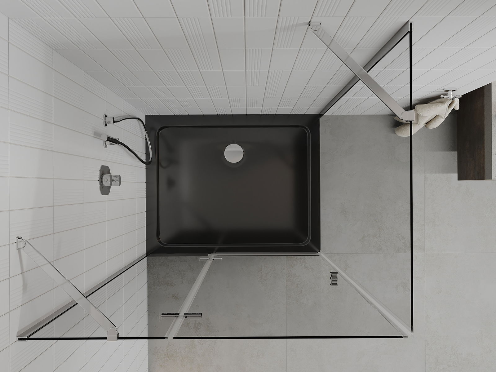Praktická a pohodlná rukoväť je vyrobená z odolného a pevného kovu. Moderný tvar v kombinácii s povrchovou úpravou prispôsobenou farbe profilov dodáva celku moderný a štýlový vzhľad, zdôrazňujúc estetiku každej kúpeľne.
