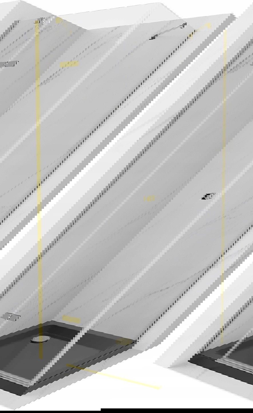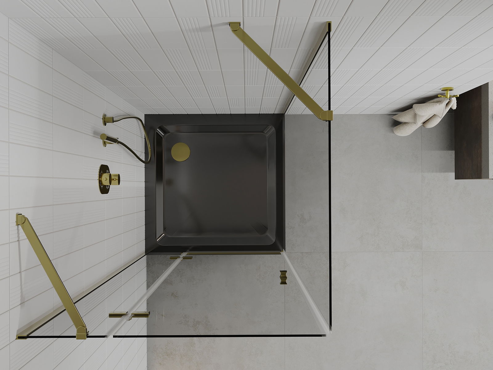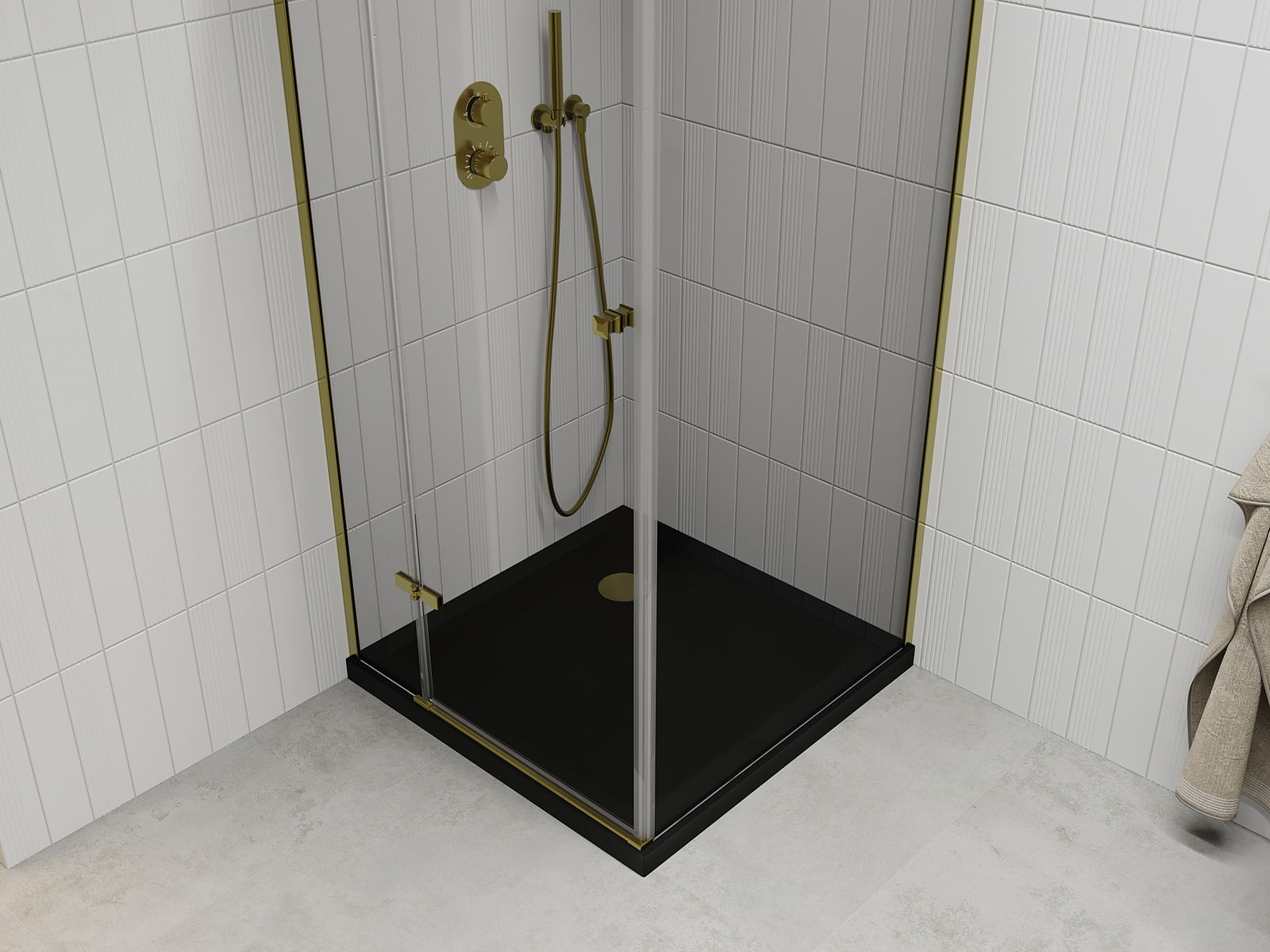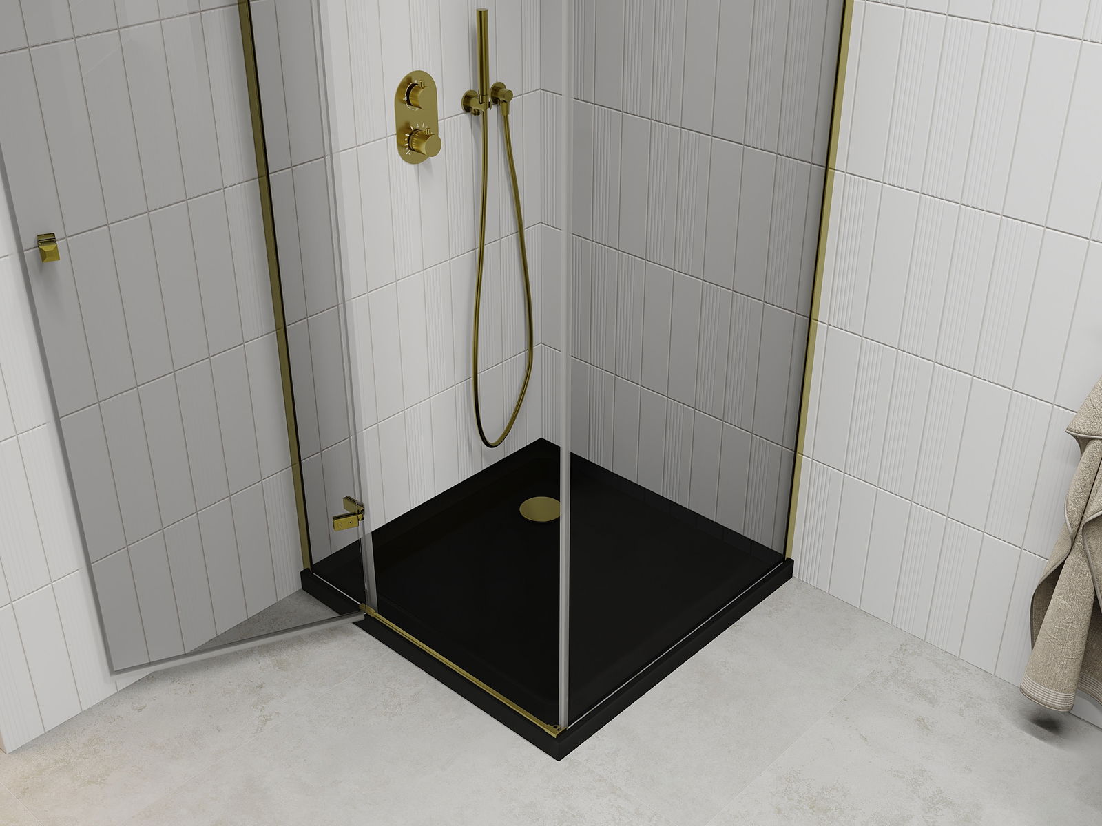 Mexen Roma sprchová kabína otváracia 80 x 80 cm, transparentná, zlatá + vanička Flat, čierna - 854-080-080-50-00-4070G