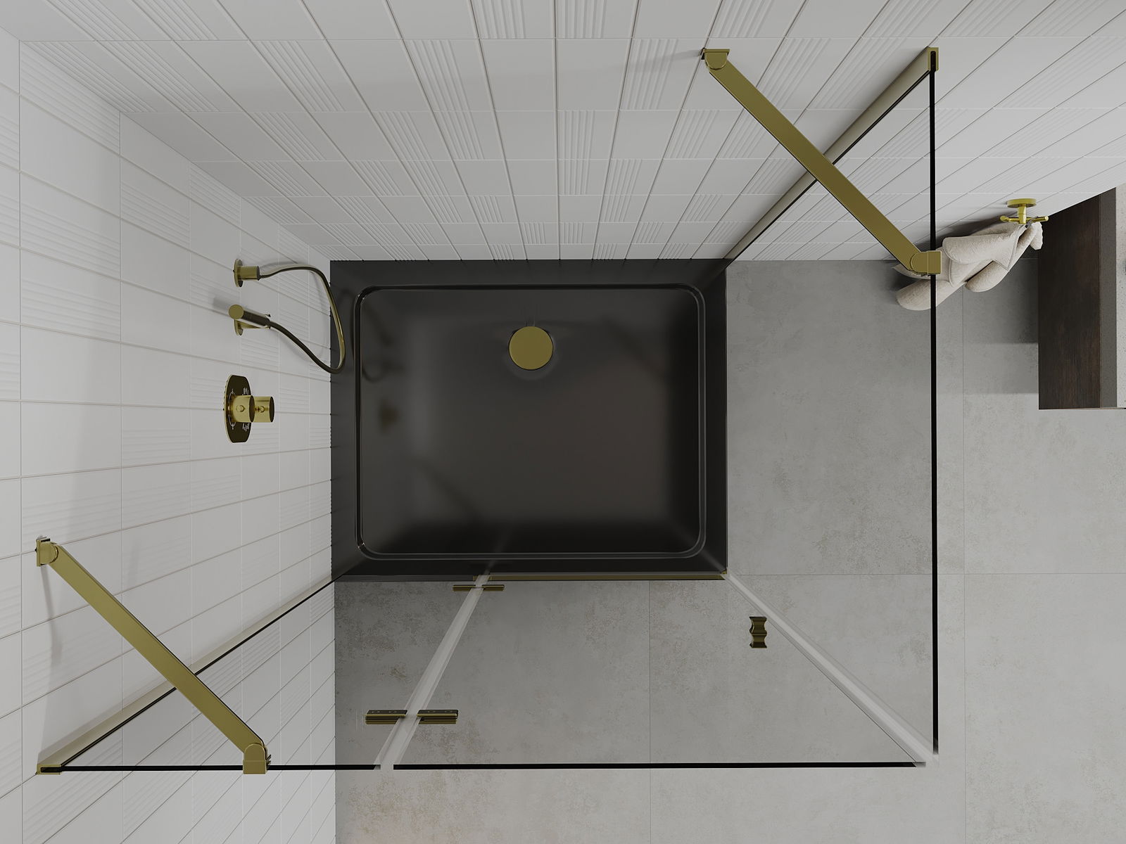 Praktická a pohodlná rukoväť je vyrobená z odolného a pevného kovu. Moderný tvar v kombinácii s povrchovou úpravou prispôsobenou farbe profilov dodáva celku moderný a štýlový vzhľad, zdôrazňujúc estetiku každej kúpeľne.