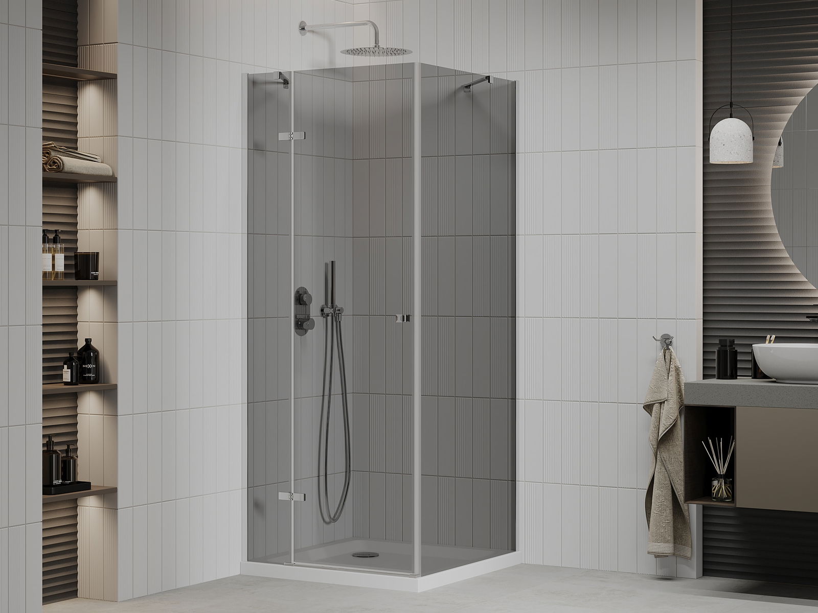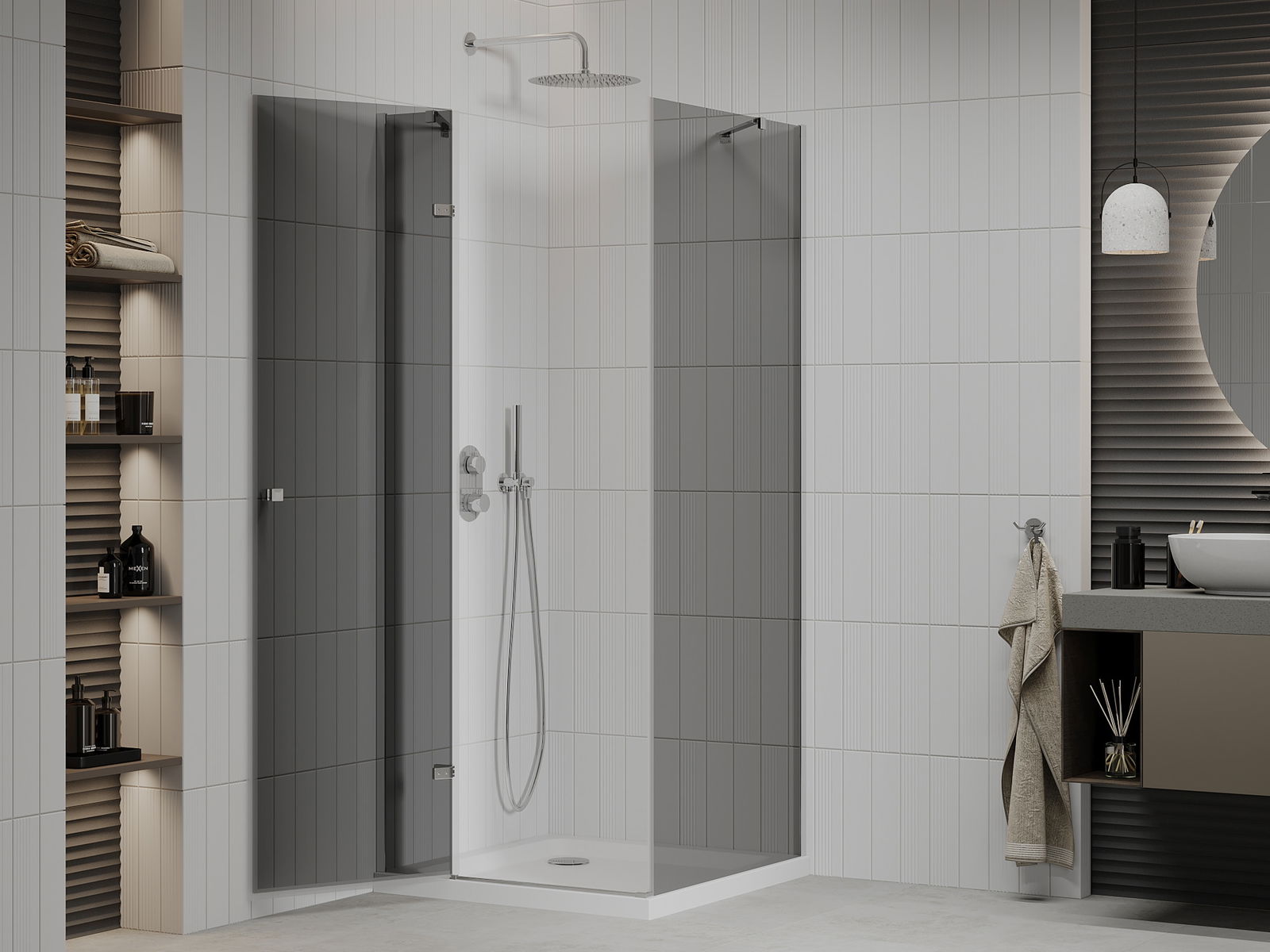 Mexen Roma sprchová kabína otváracia 90 x 90 cm, grafit, chróm + vanička Flat, biela - 854-090-090-01-40-4010