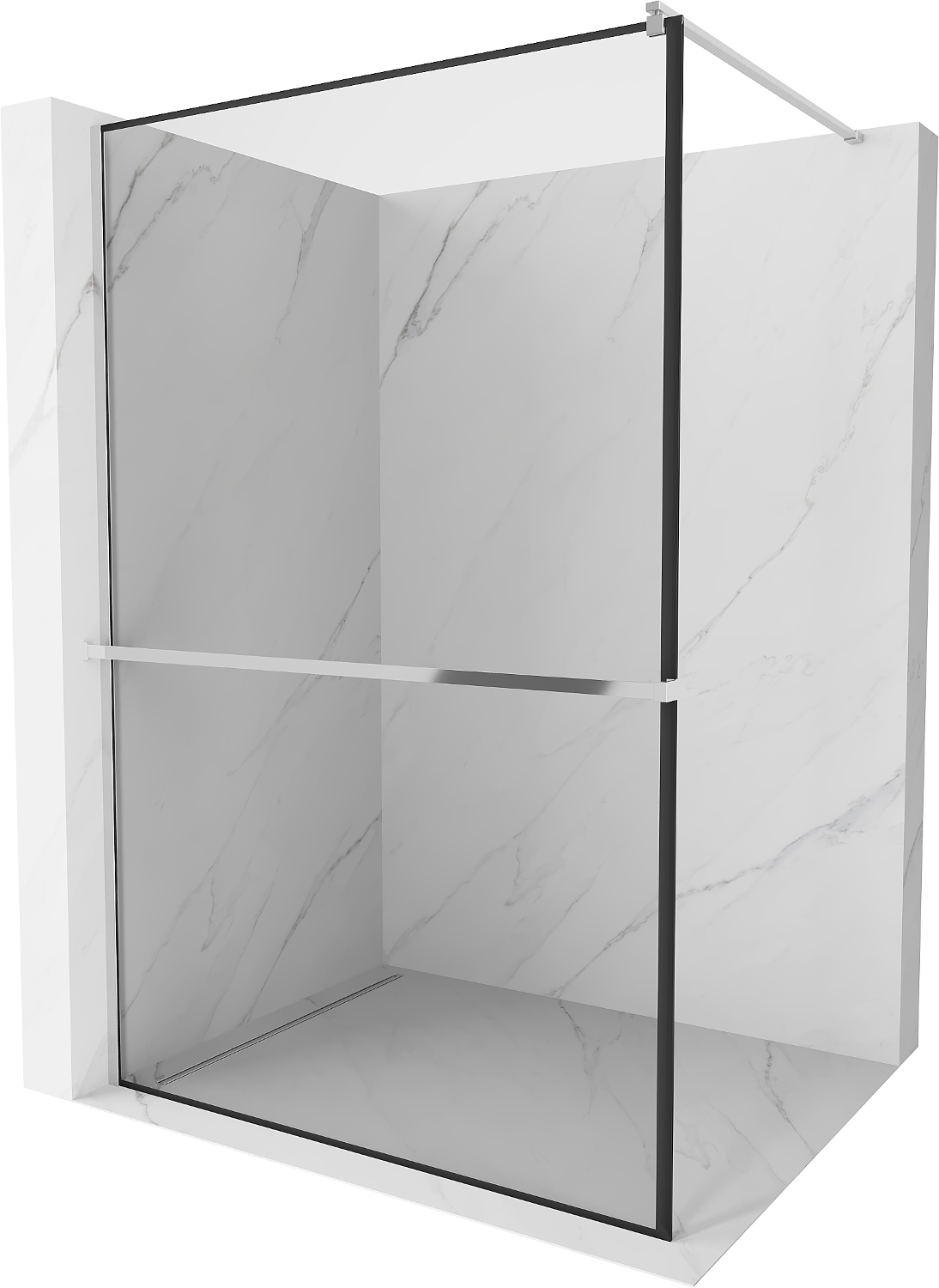 Mexen Kioto+ sprchová stena s poličkou Walk-in 90 x 200 cm, čierny rám, chróm - 800-090-121-01-70