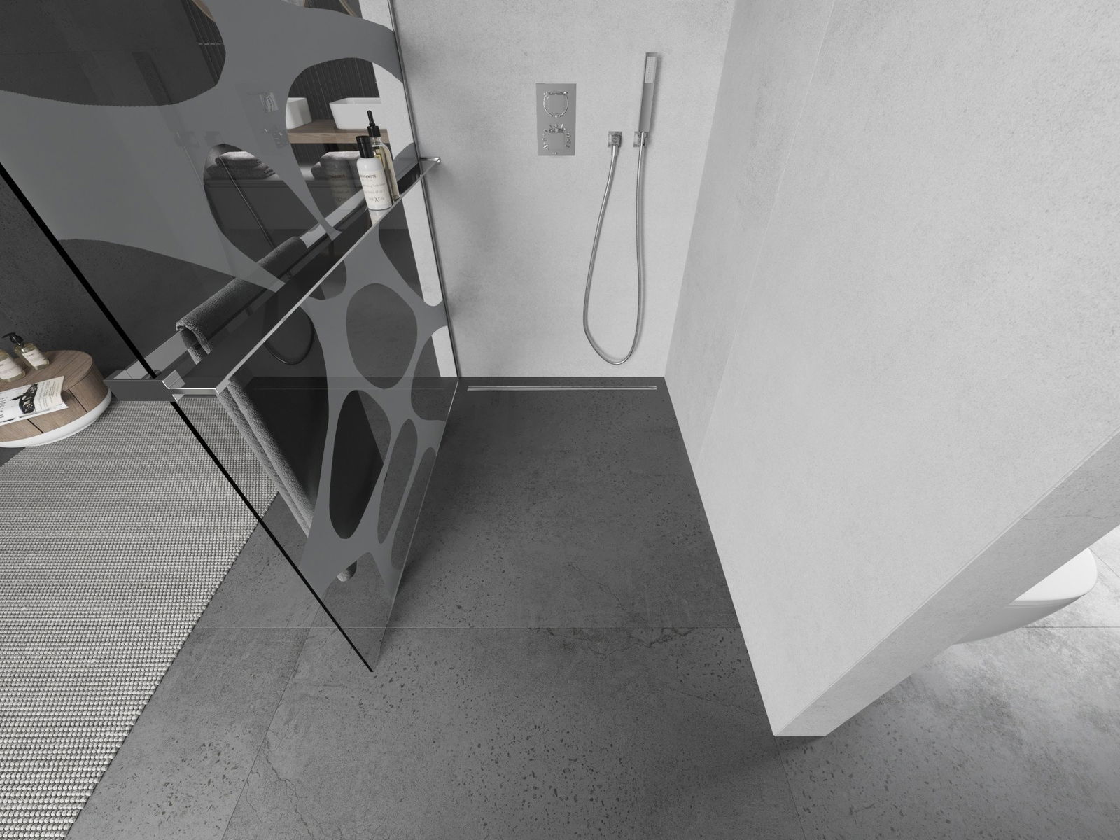 V závislosti od vašich potrieb je možné produkt namontovať na sprchovací podnos aj priamo na podlahe. Univerzálna montážna metóda vám umožňuje prispôsobiť produkt rôznym typom kúpeľní a nakonfigurovať priestor.