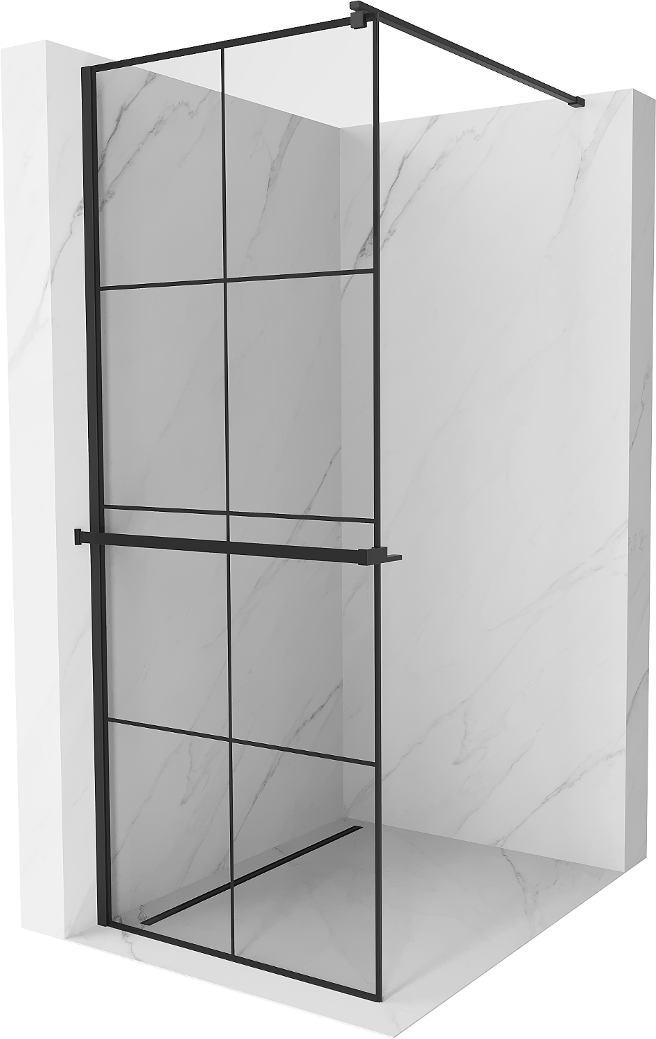 Mexen Kioto+ sprchová stena s policou Walk-in 80 x 200 cm, čierna mriežka, čierna - 800-080-121-70-77